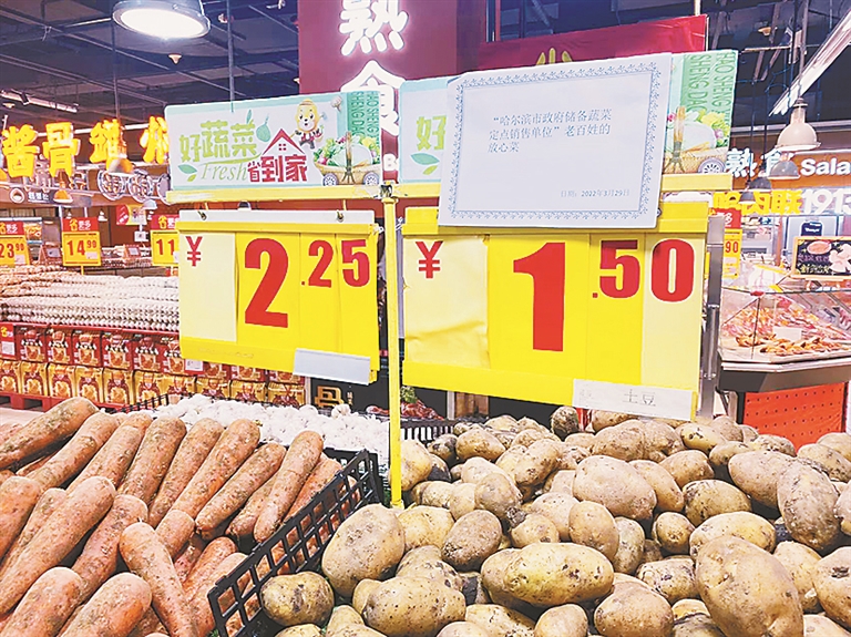 生活報(bào)訊 (實(shí)習(xí)生張瑞焓 記者仲亮) 29日,哈爾濱市政府按計(jì)劃向6個(gè)主城區(qū)多家連鎖超市投放4種儲(chǔ)備蔬菜。記者走訪家樂福樂松店看到,在銷售柜臺(tái)上張貼著“哈爾濱市政府儲(chǔ)備蔬菜投放點(diǎn)”,據(jù)店長介紹,儲(chǔ)備蔬菜的價(jià)格很親民,甚至還低于市場價(jià)格。
