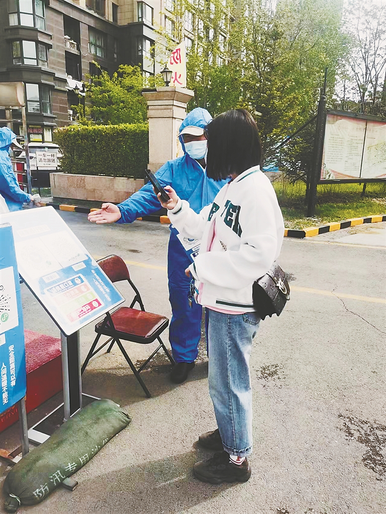 5日上午,記者在道里歐洲新城小區(qū)6號(hào)門看到,小區(qū)進(jìn)出口被分為進(jìn)口和出口兩個(gè)單獨(dú)通道,業(yè)主出門無(wú)需掃碼即可正常出行,但進(jìn)入時(shí)均需進(jìn)行掃碼、測(cè)溫和戴口罩。
