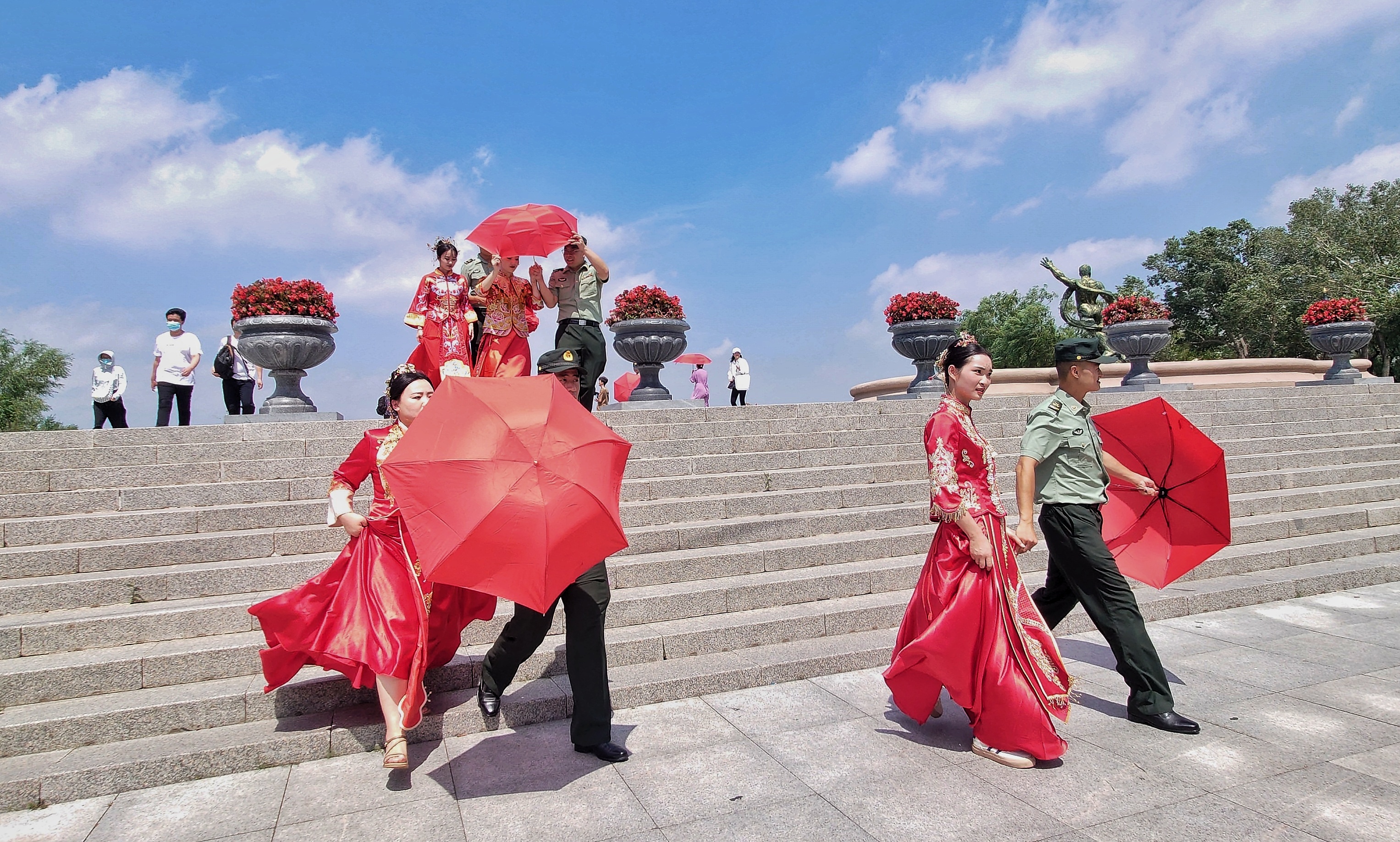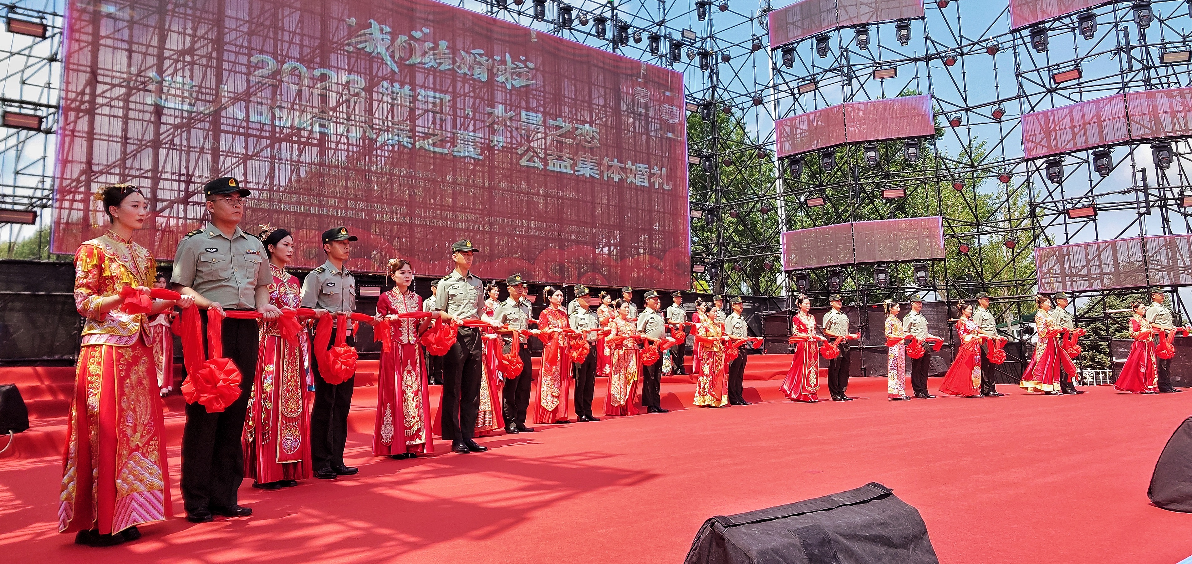 冷暖有相知,喜樂有分享;共量天地寬,共度日月長。7月29日,2023洋河·水晶之戀迷人的哈爾濱之夏公益中式集體婚禮在哈爾濱防洪紀(jì)念塔廣場舉行。參加婚禮的20位新郎來自中國人民解放軍某部隊(duì),新娘來自山東、河南、內(nèi)蒙古、江蘇、廣東、廣西、云南等12個(gè)省和自治區(qū)。