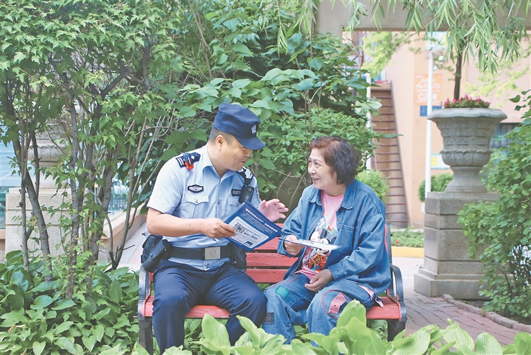 民警在對(duì)居民進(jìn)行反詐宣傳。