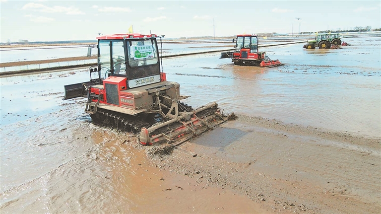 無人農機在水田整地作業(yè)。 馬文竹 王帥攝