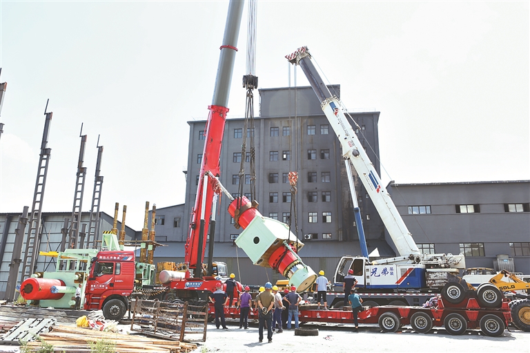 吊裝立搗臥壓擠壓機(jī)。本報(bào)記者 劉柏森攝