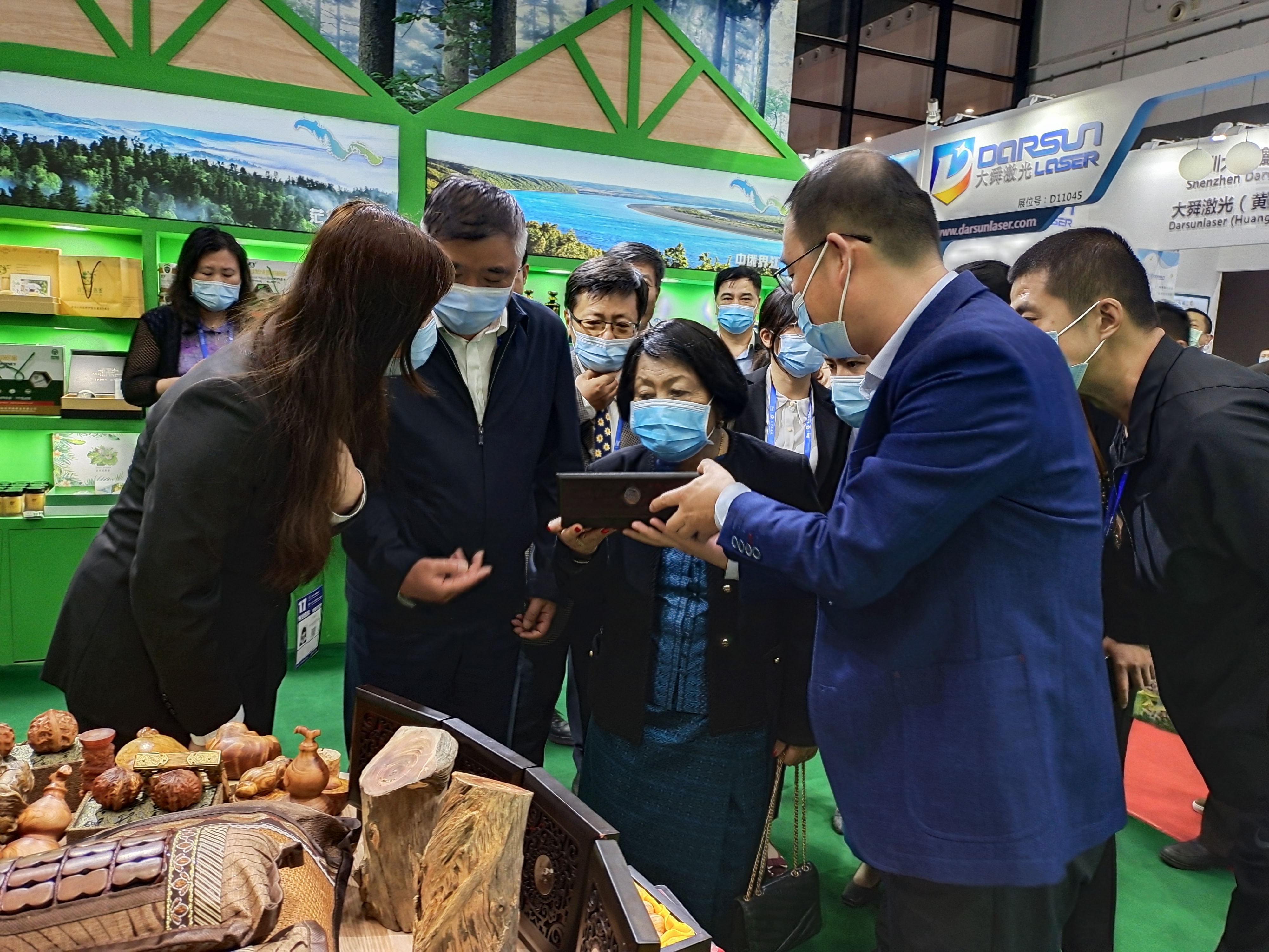 2020年,在南寧第二屆“中國(guó)天然氧吧”文化旅游節(jié)展覽活動(dòng)中,周力勇為參觀者講解產(chǎn)品功效。