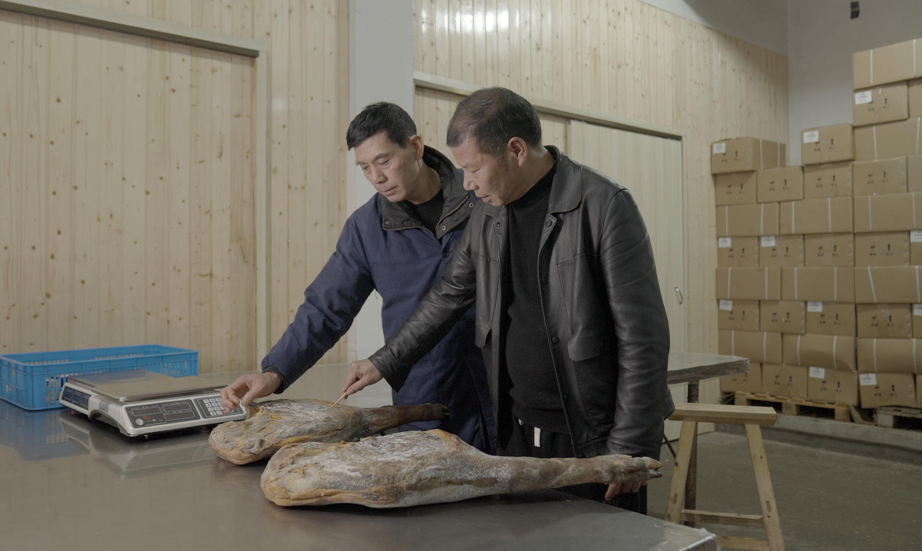 滕維洪(右)自19歲起學(xué)習(xí)火腿制作,從事相關(guān)行業(yè)三十余年。