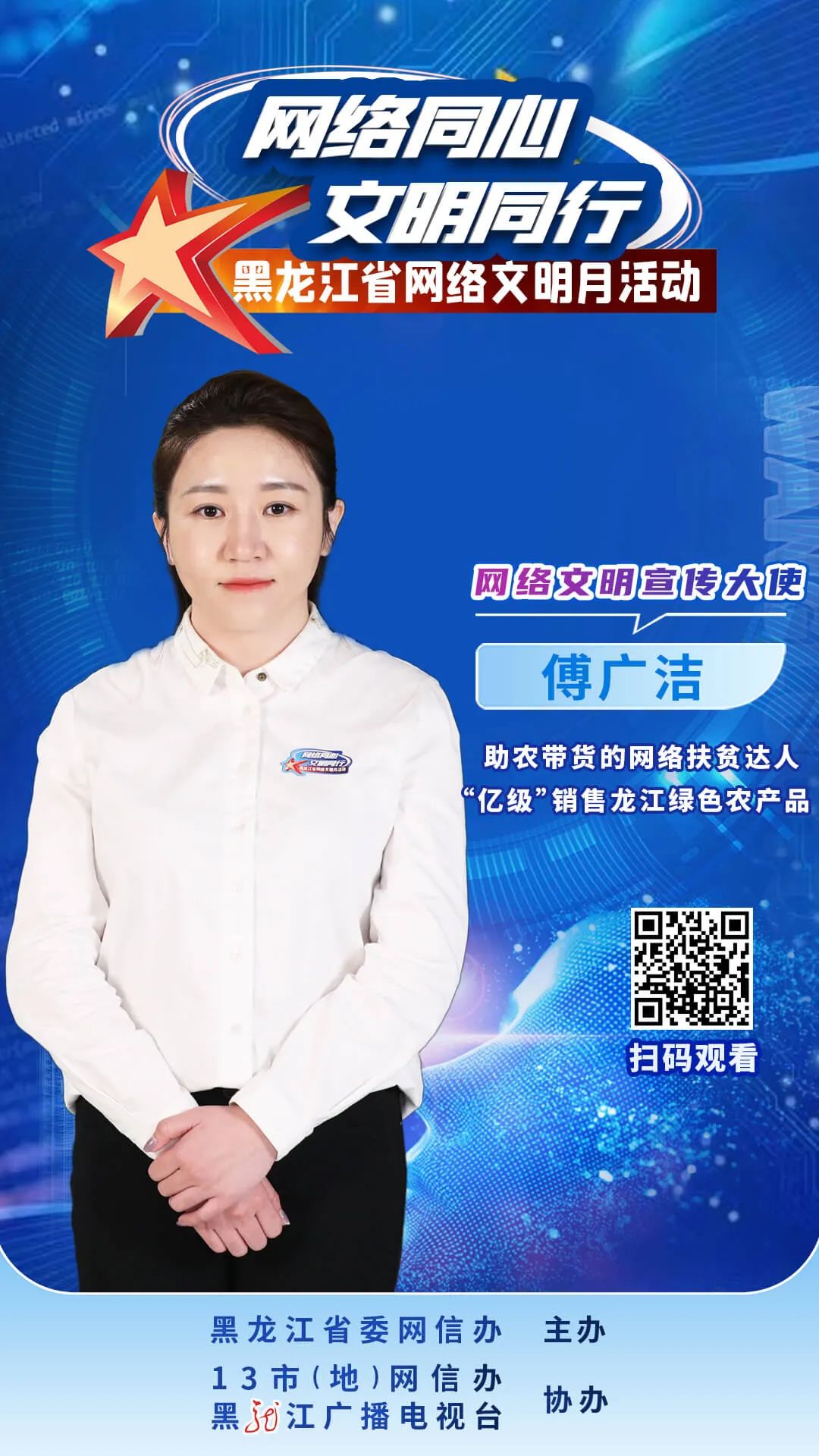 從近年來我省涌現(xiàn)出的好網(wǎng)民、網(wǎng)絡(luò)正能量榜樣和網(wǎng)絡(luò)名人中,遴選10位在網(wǎng)絡(luò)內(nèi)容創(chuàng)作傳播、網(wǎng)絡(luò)行為規(guī)范、網(wǎng)絡(luò)安全守護(hù)等方面表現(xiàn)突出的網(wǎng)絡(luò)人士,作為“黑龍江網(wǎng)絡(luò)文明宣傳大使”。