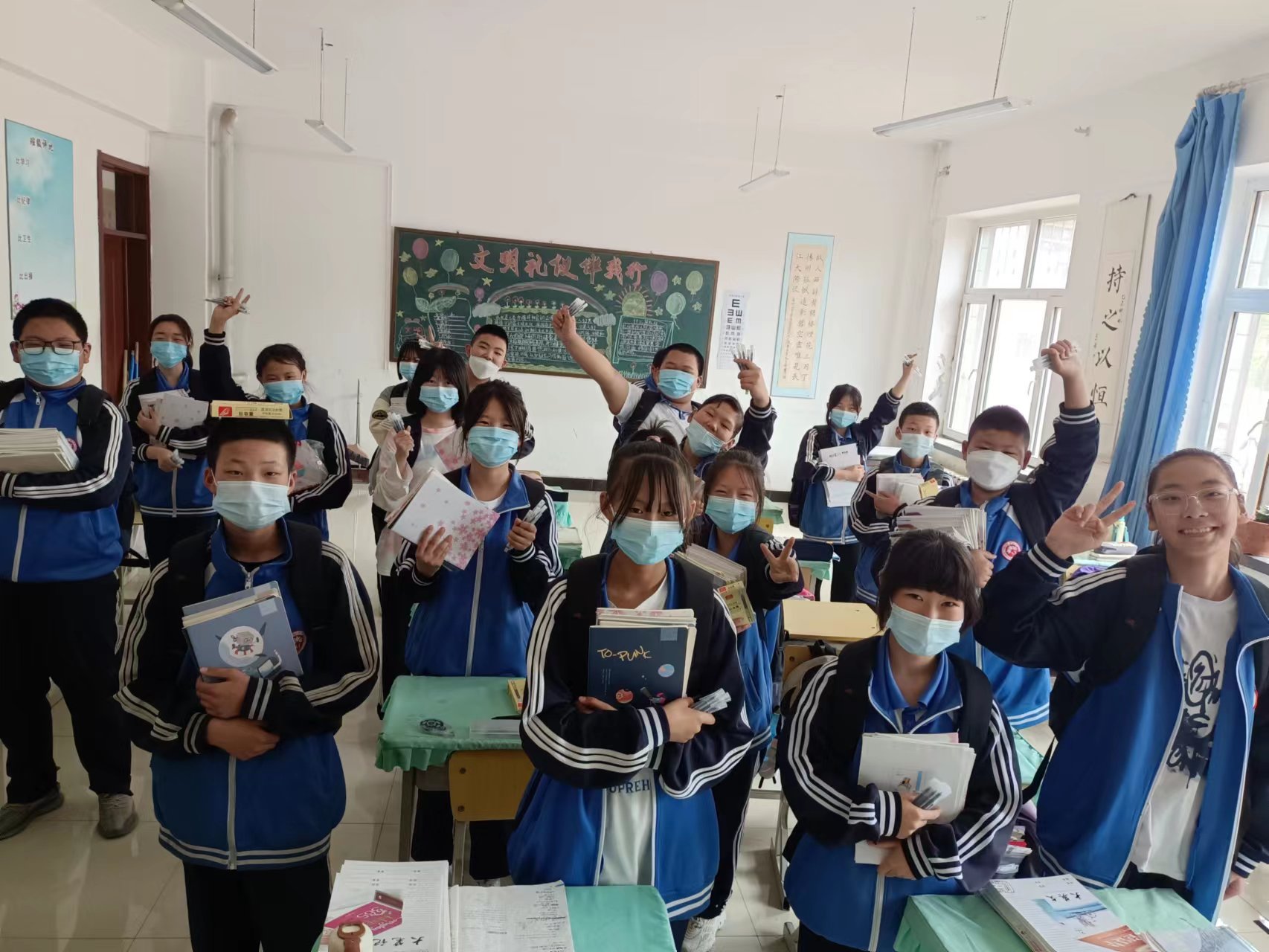 位于香坊區(qū)向陽(yáng)鎮(zhèn)金家村的向陽(yáng)中學(xué)是一所農(nóng)村學(xué)校,學(xué)校地處偏遠(yuǎn)、硬件設(shè)施薄弱,學(xué)校學(xué)生都是農(nóng)民家的孩子,大部分家庭比較困難。此次活動(dòng)為全校6個(gè)班的125名學(xué)生每人捐贈(zèng)了書包、作業(yè)本、筆等文教用品。還捐贈(zèng)了一些足球、籃球、羽毛球、大繩等學(xué)生們喜歡的體育器材。
