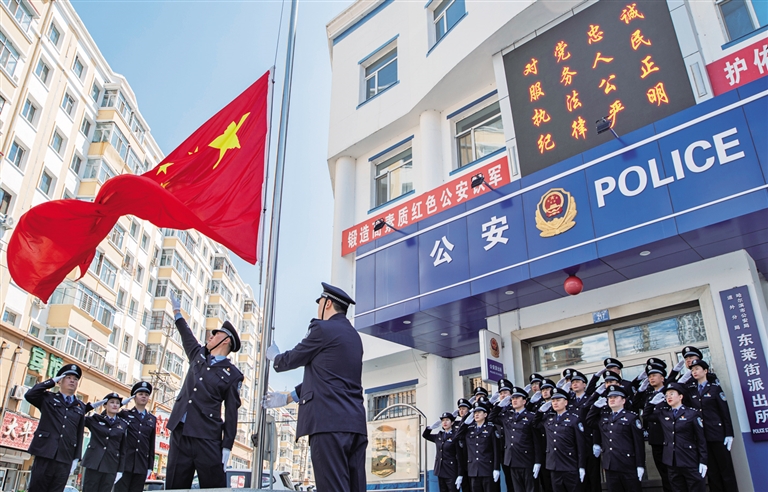 6月6日,星期一。清晨,雄壯的國(guó)歌響起,東萊街派出所民警全體立正,面向國(guó)旗,莊嚴(yán)敬禮。這樣的儀式,每周一都要舉行,寒來(lái)暑往,從未間斷。