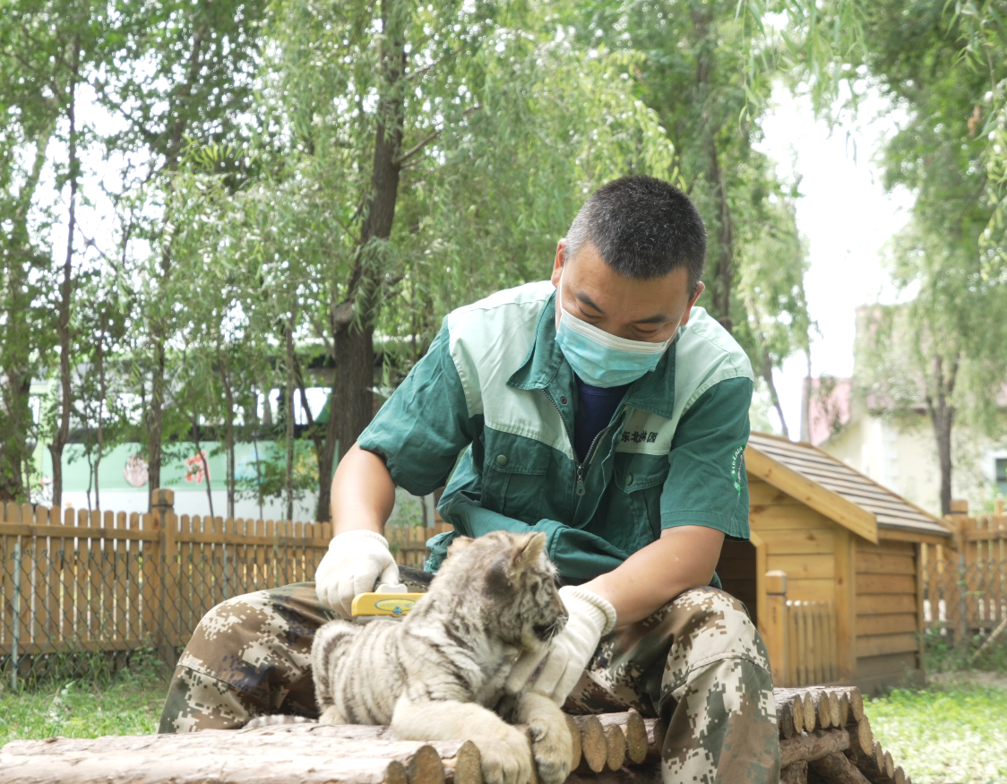 “新生幼虎根據(jù)個(gè)體情況不同,需要2或3小時(shí)喂一次奶,有時(shí)一個(gè)值班室內(nèi)有幾十只幼虎,飼養(yǎng)員們24小時(shí)值班護(hù)理,基本睡不上一個(gè)完整的覺?!痹诨@工作18年,李鑫迎接過上百只小東北虎的誕生,照顧它們的時(shí)間比照顧自家孩子還多。18年的護(hù)理經(jīng)驗(yàn),也讓他成為一名合格的“奶爸”。