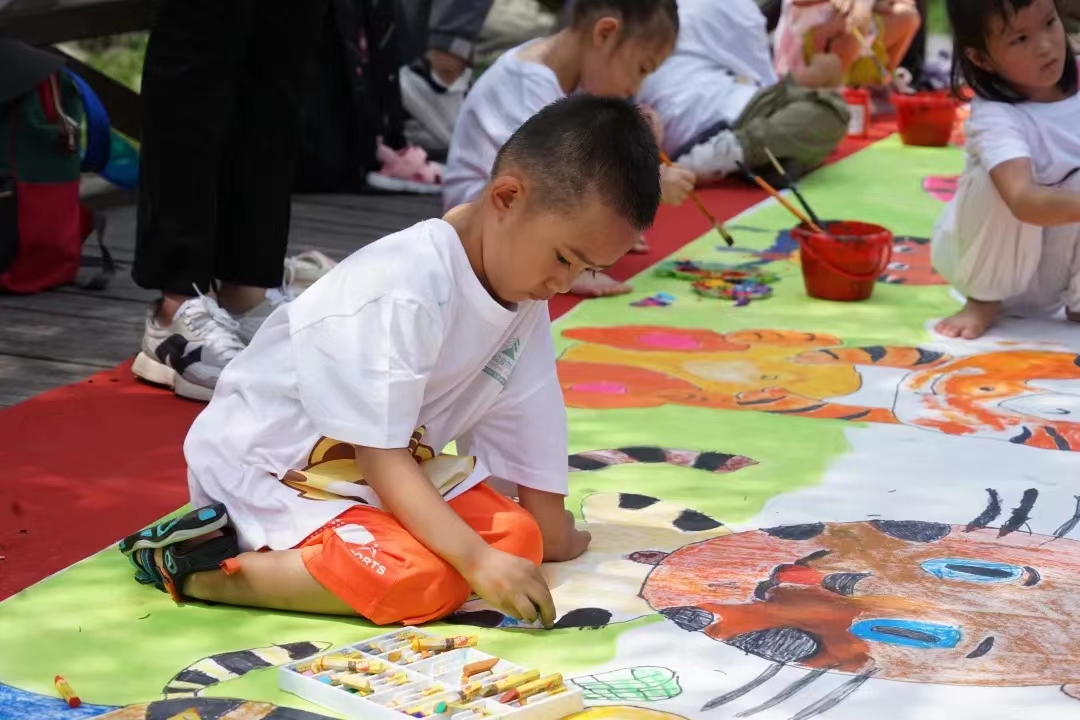 國(guó)際青少年繪畫展活動(dòng)中小朋友正在畫虎(圖片由省自然教育辦提供)