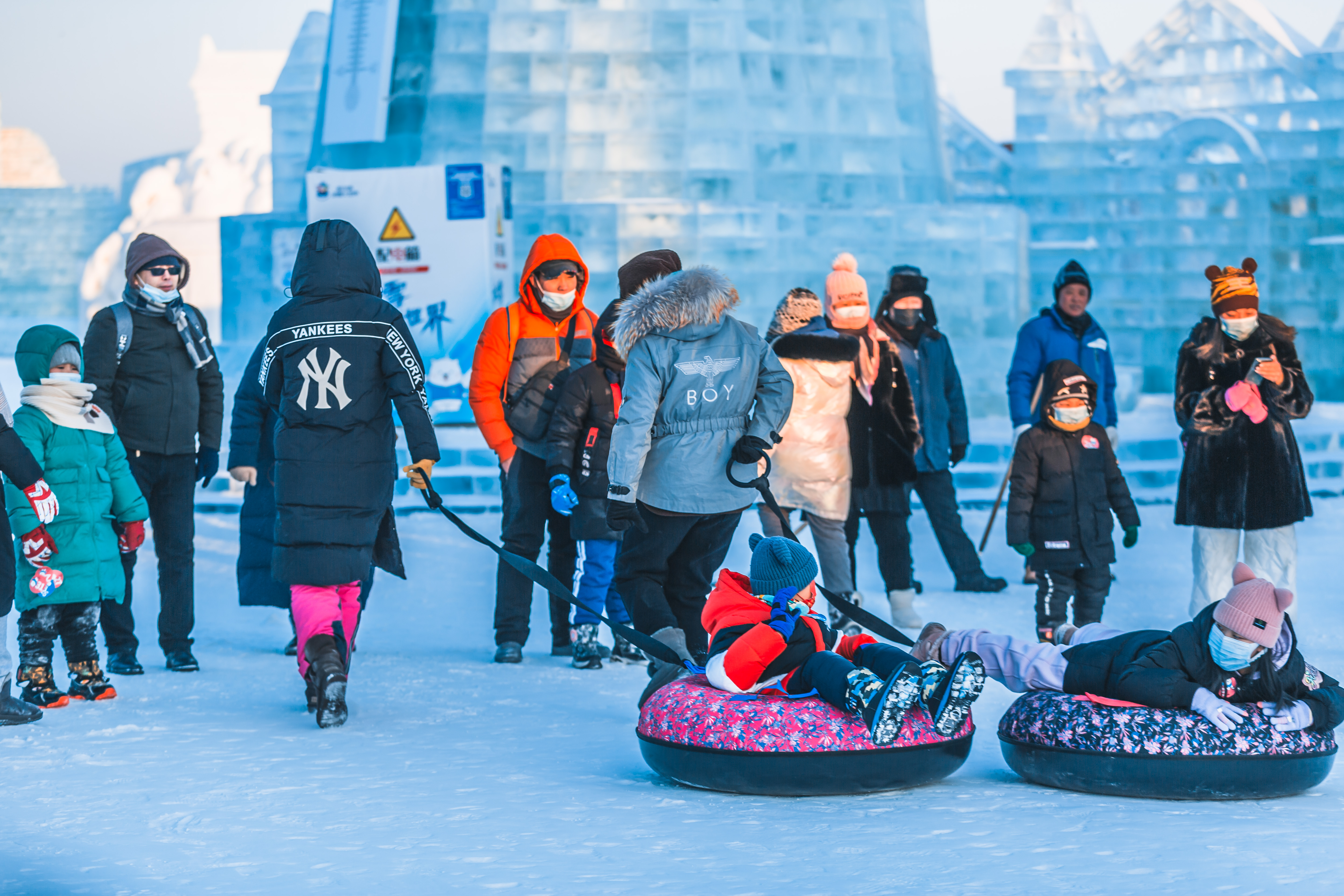 雪圈吸引小游客(照片由哈爾濱冰雪大世界提供)