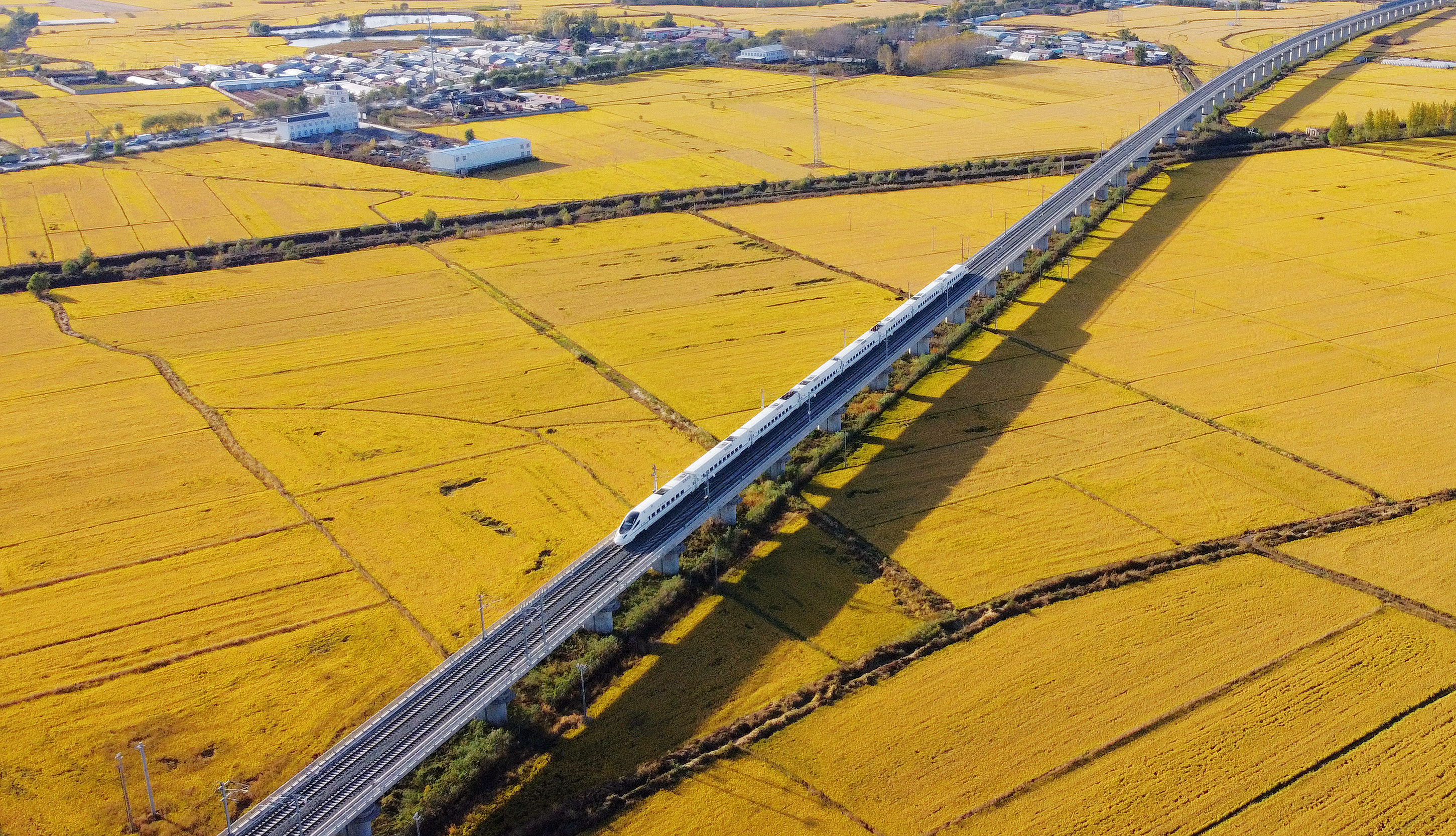 沿著高鐵看龍江,它是一幅自然生態(tài)畫卷,松花江水納清流,三江平原豐美多姿,金秋時(shí)節(jié),豐收的喜悅流淌在北大倉(cāng)。高寒高鐵發(fā)展的十年,是非凡的十年,高鐵已經(jīng)成為拉動(dòng)龍江經(jīng)濟(jì)高質(zhì)量發(fā)展的重要引擎。