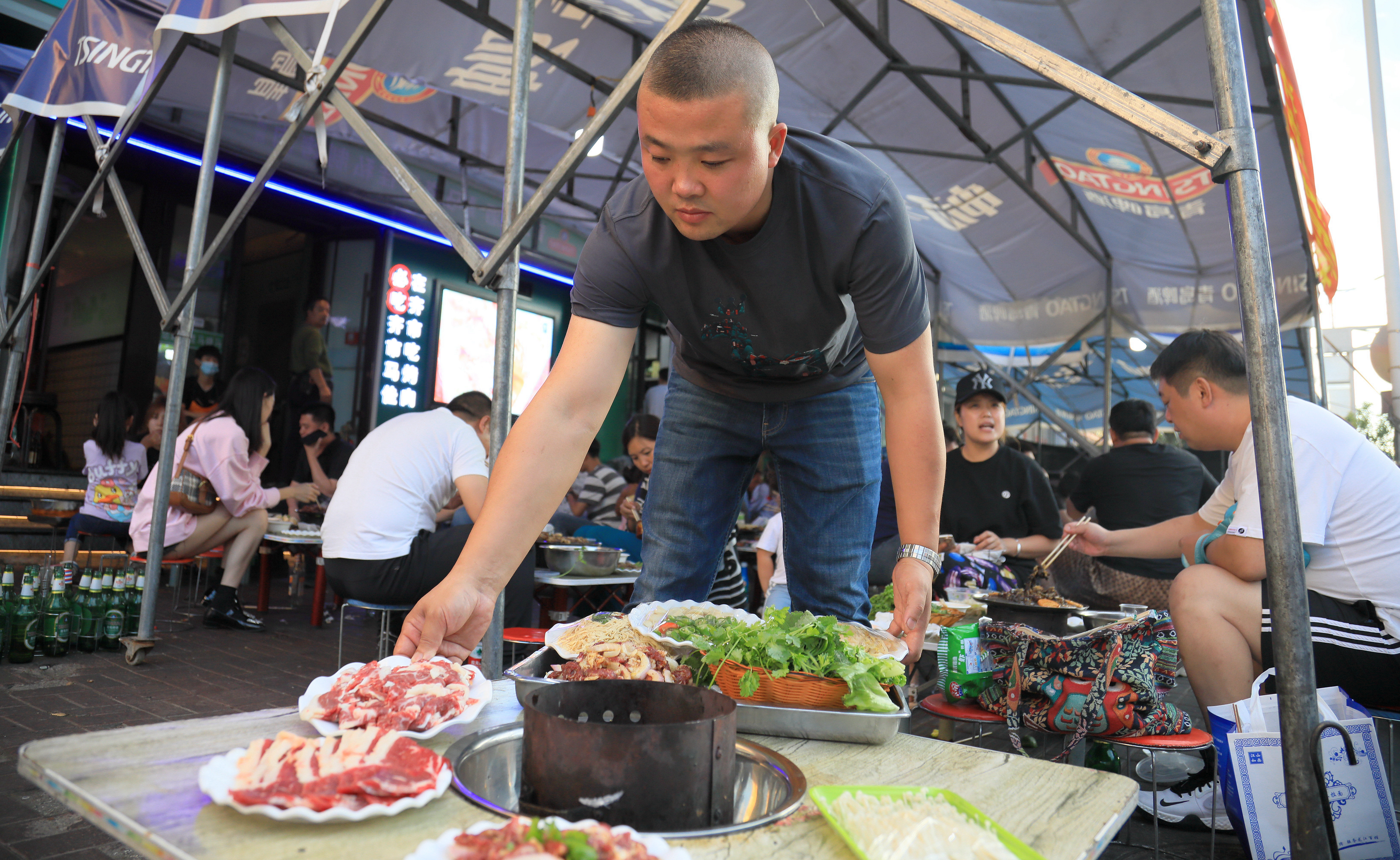 “大家排好隊(duì)選肉,找到桌子,等著上炭”。經(jīng)理于海波一邊為顧客切肉一邊吆喝著。今年,齊齊哈爾市被授予“國(guó)際烤肉美食之都”稱號(hào),完善的高鐵網(wǎng)絡(luò),讓游客慕名而來(lái),于海波也擴(kuò)大了店鋪的銷售。