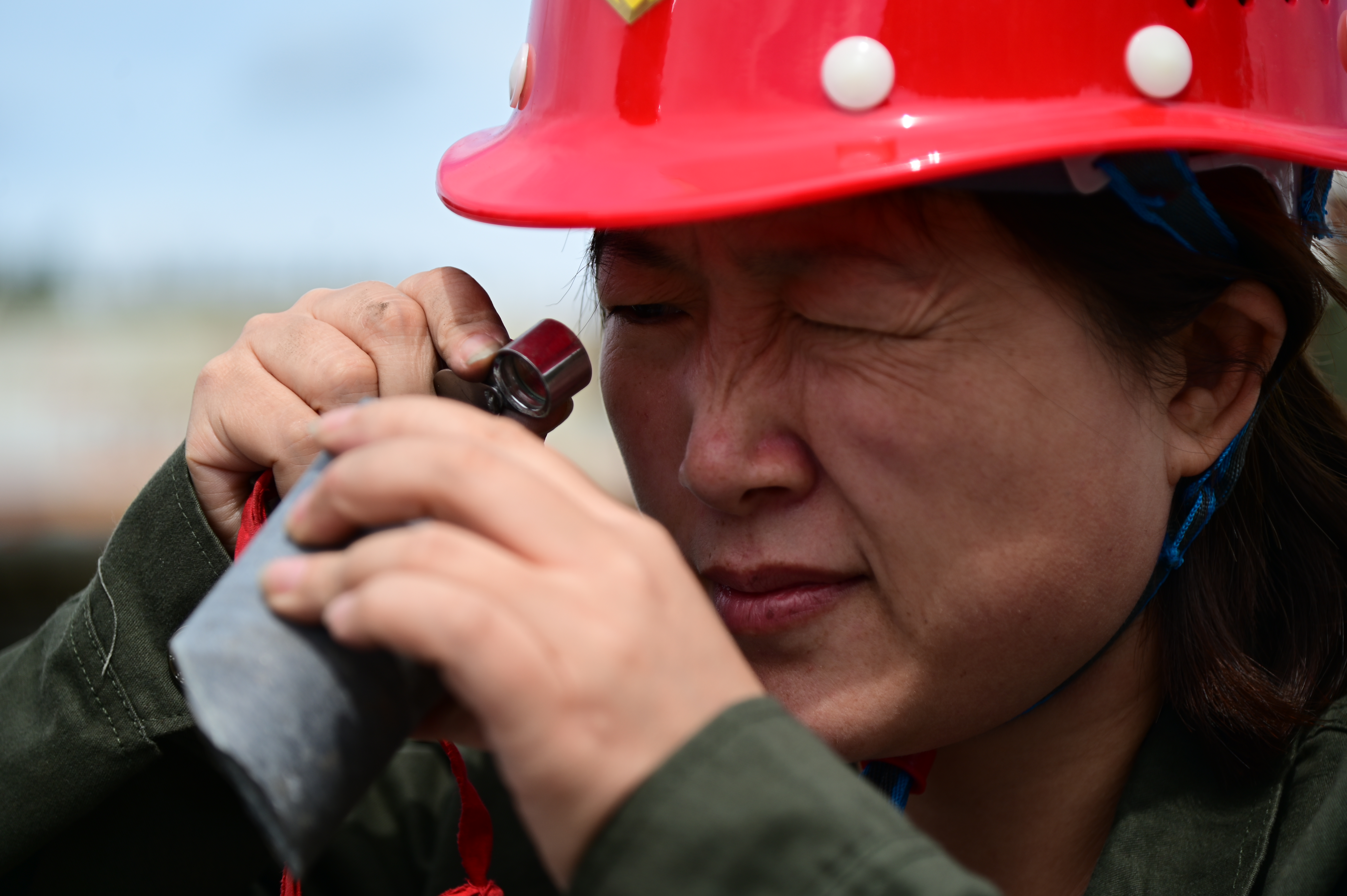 野外地質(zhì)工作,不僅要忍受風(fēng)吹日曬雪打雨淋,還面臨著很多危險(xiǎn),被蚊蟲(chóng)叮咬、野生動(dòng)物襲擊等。張寄丹被蜱蟲(chóng)咬過(guò),臉被摔得血肉模糊……“從喜歡到堅(jiān)持,其實(shí)就是個(gè)過(guò)程,老一輩地質(zhì)人比我們艱苦,那時(shí)連車(chē)、道都沒(méi)有,他們也堅(jiān)持下來(lái)了??恳粋€(gè)羅盤(pán)走天下,我能堅(jiān)持下來(lái)也是靠一種傳承?!睆埣牡ぢ?tīng)著父輩們?yōu)樽鎳?guó)找礦光榮故事長(zhǎng)大,也在續(xù)寫(xiě)著這份光榮。