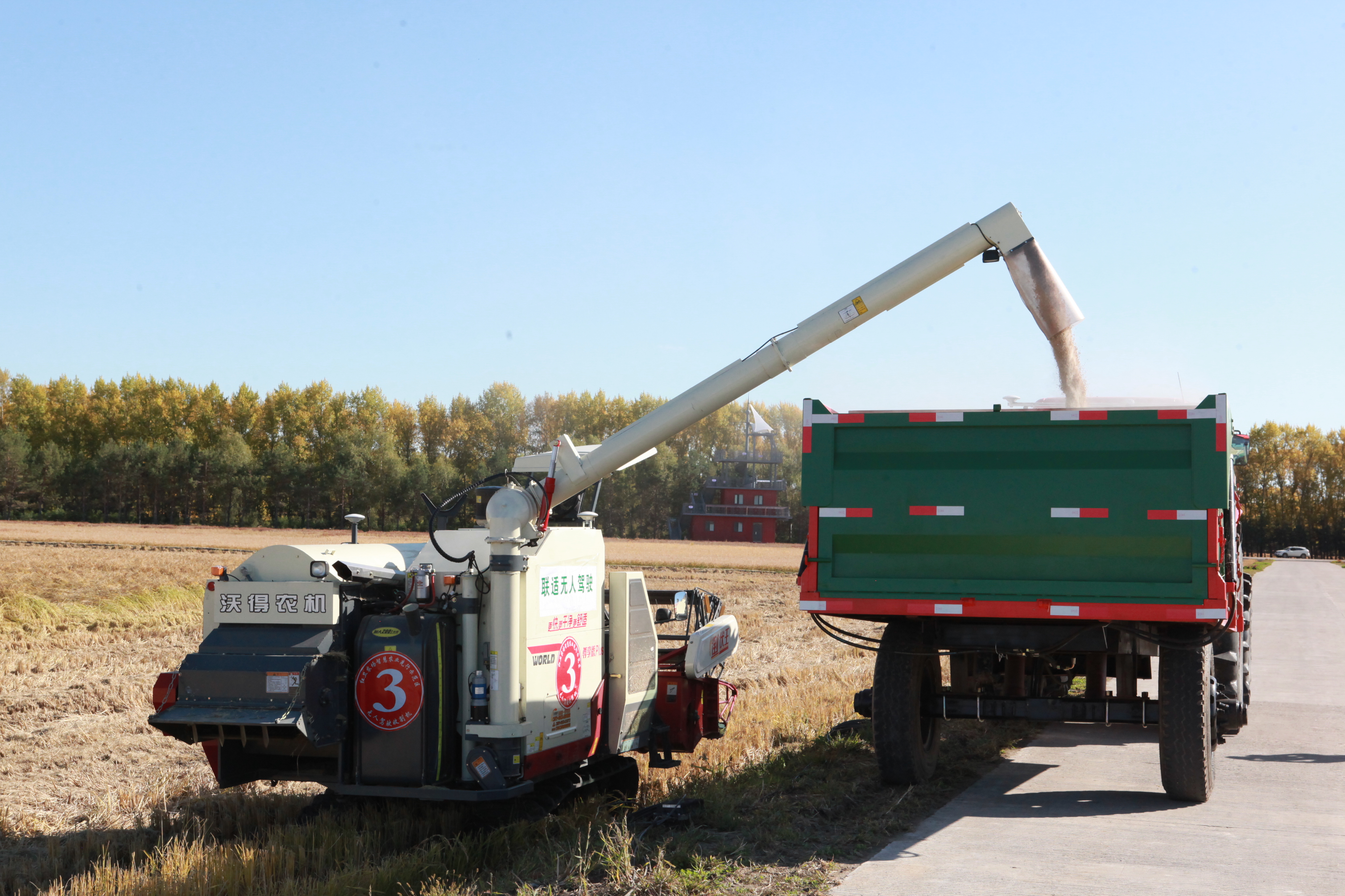水稻收獲了,無人農(nóng)機(jī)作業(yè)中