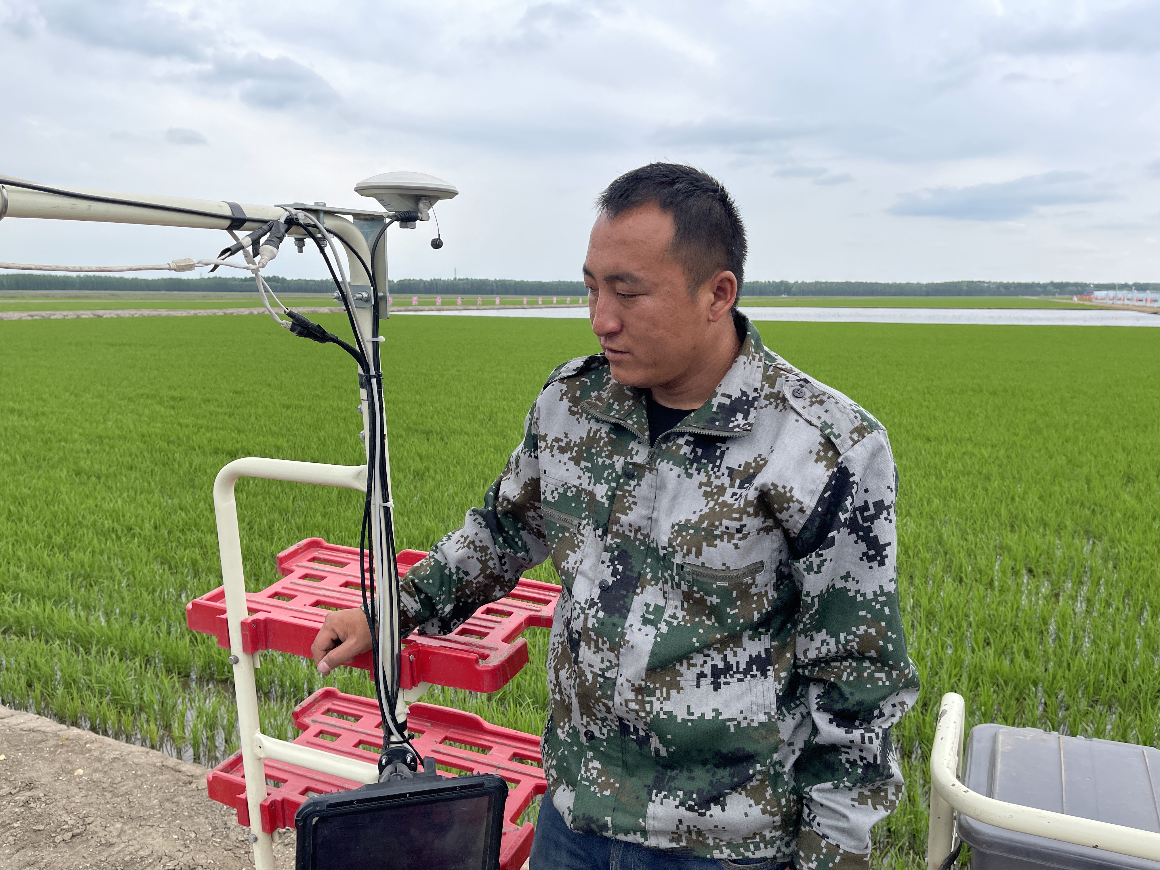 一邊熟練在配有北斗導(dǎo)航的無人智能插秧機(jī)控制板上操作,一邊憨笑的張良寶是北大荒集團(tuán)紅衛(wèi)農(nóng)場(chǎng)有限公司的種植戶,回想2019年第一次在紅衛(wèi)農(nóng)場(chǎng)觀摩無人農(nóng)機(jī)演示的時(shí)候,腦海第一個(gè)閃現(xiàn)的念頭就是:“這么先進(jìn)的機(jī)器,萬一出故障咋整?”