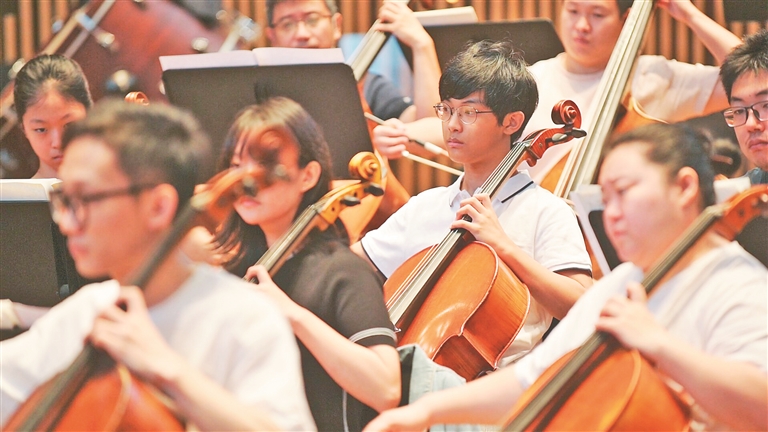 14歲的大提琴手夏商周對這場音樂會同樣充滿期待。當《牧神午后前奏曲》響起,舞臺上,在職業(yè)演奏家行列中,這張充滿朝氣的臉龐還略顯稚嫩,他凝神屏息,委婉低沉的音符從手中琴弓流出,匯入交響樂隊的華彩樂章中。