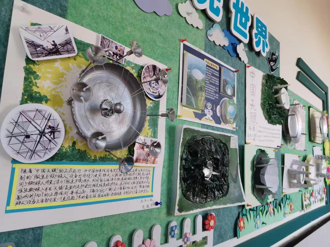 校園內(nèi),一條名為“智造未來”的中國(guó)前沿科技成果文化長(zhǎng)廊縱貫東西,展示的是學(xué)生們用不同材料制作出中國(guó)火箭模型、天眼射電望遠(yuǎn)鏡模型、組裝航母船模等作品,展現(xiàn)了學(xué)生對(duì)科學(xué)探索的動(dòng)手實(shí)踐能力和對(duì)科學(xué)家的無(wú)限崇敬與熱愛之情,激發(fā)了學(xué)生學(xué)科學(xué)、用科學(xué)的濃厚興趣。