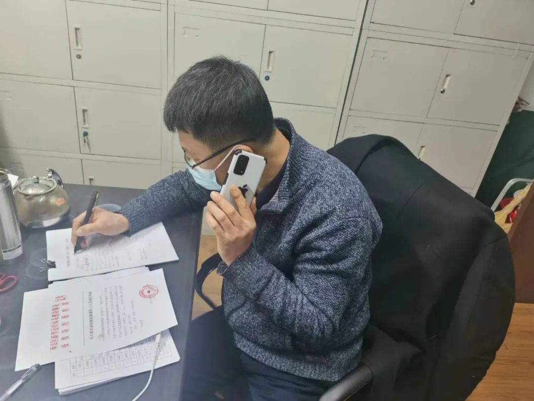 趙勇正在電話聯(lián)系交接工作
