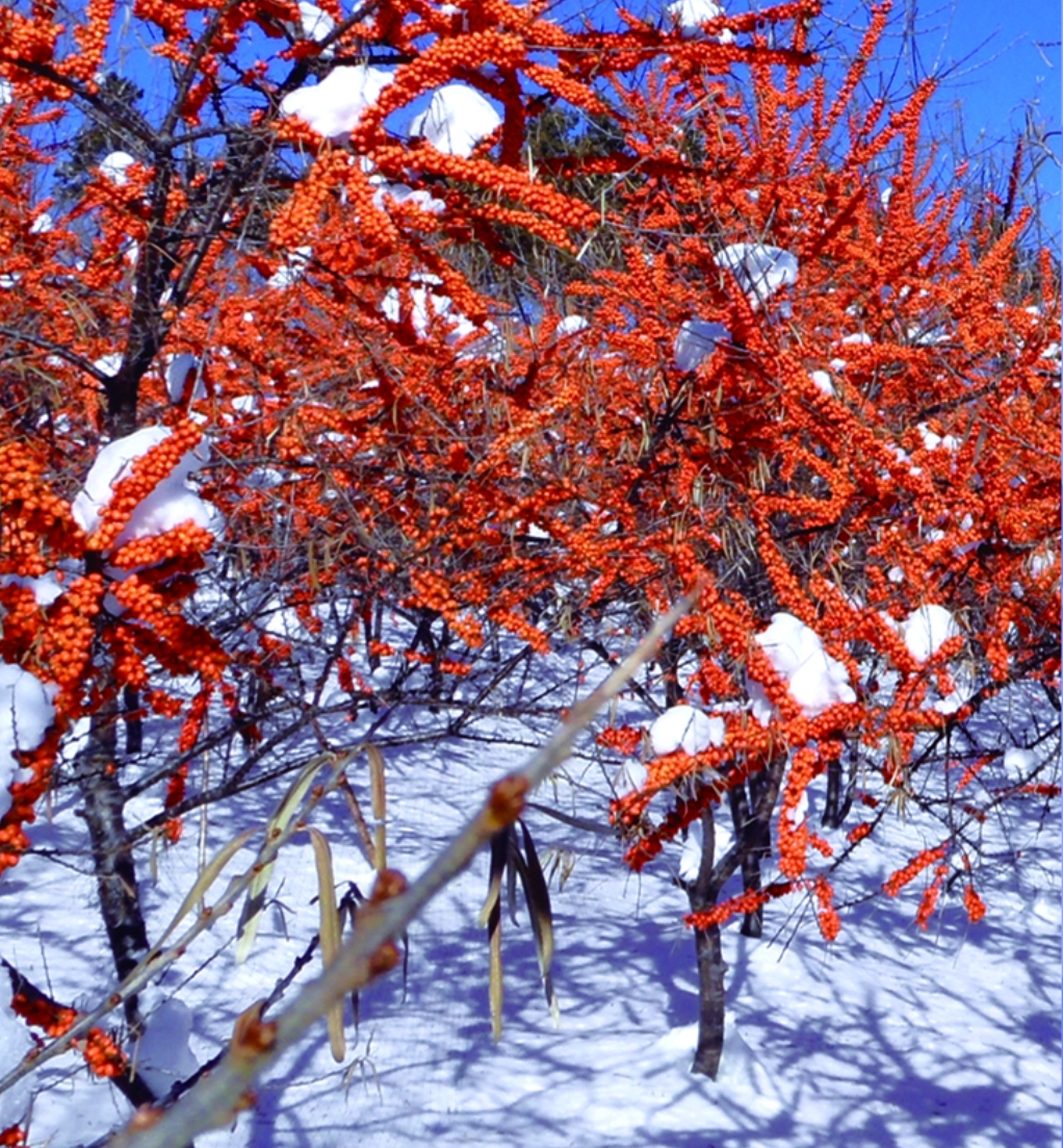 一場大雪過后,“中國冬果沙棘之鄉(xiāng)”林口縣,大片火紅的沙棘樹更為耀眼。
