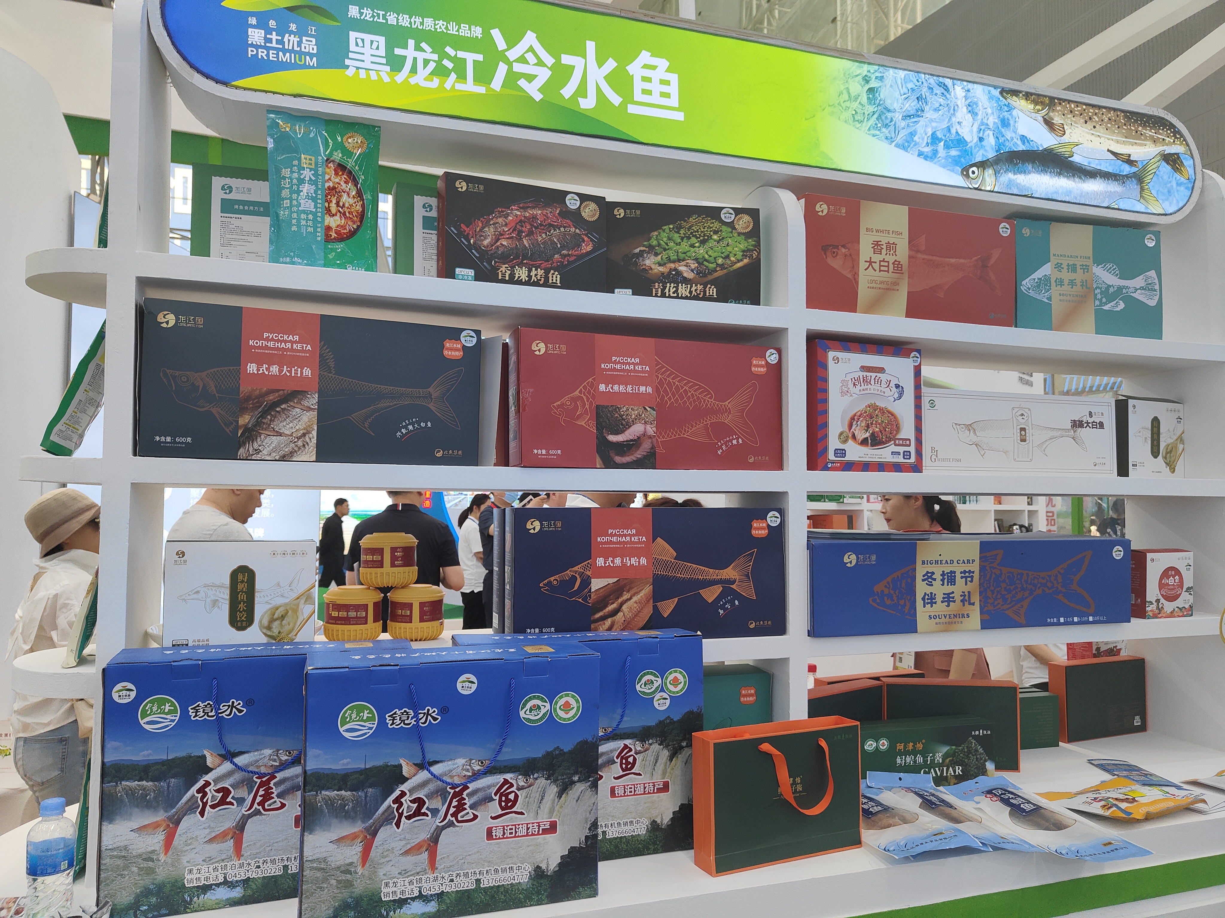 6月18日,第三十二屆哈洽會(huì)進(jìn)入倒計(jì)時(shí),位于“黑土優(yōu)品”展區(qū)的龍江冷水魚(yú)展位前依舊人氣十足。