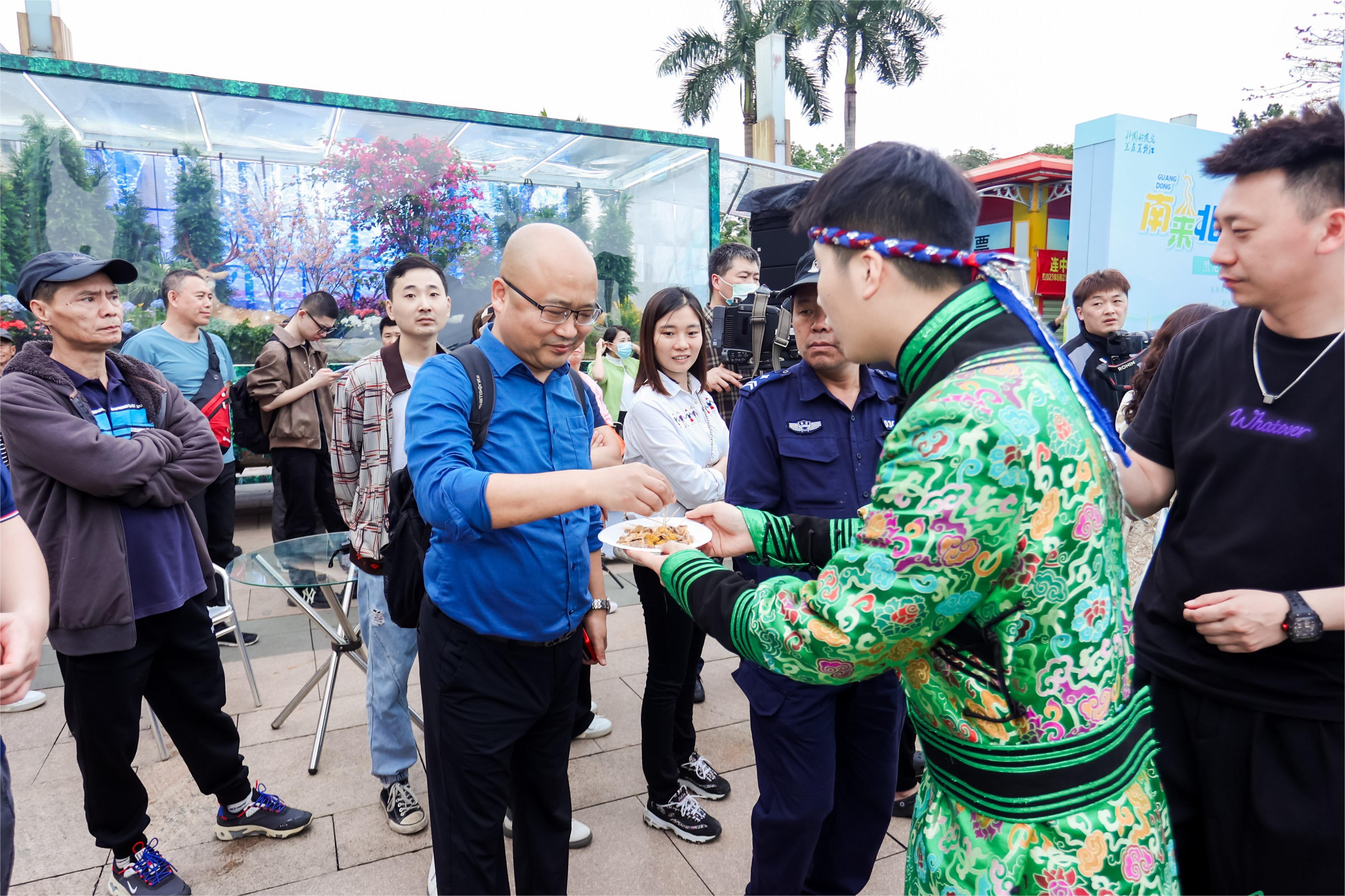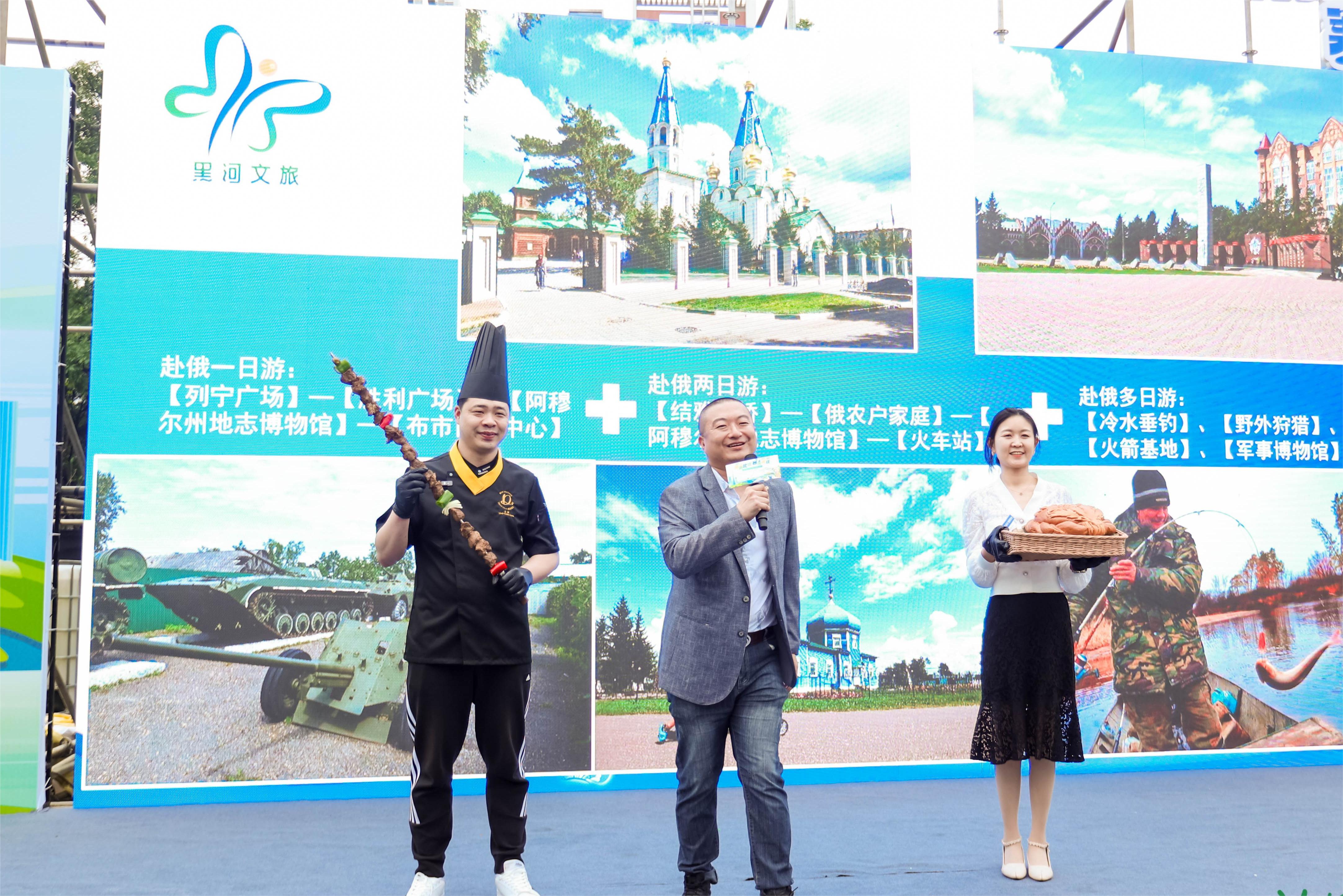 黑河市文旅推介官帶著俄式大串與大列巴與廣州市民游客互動