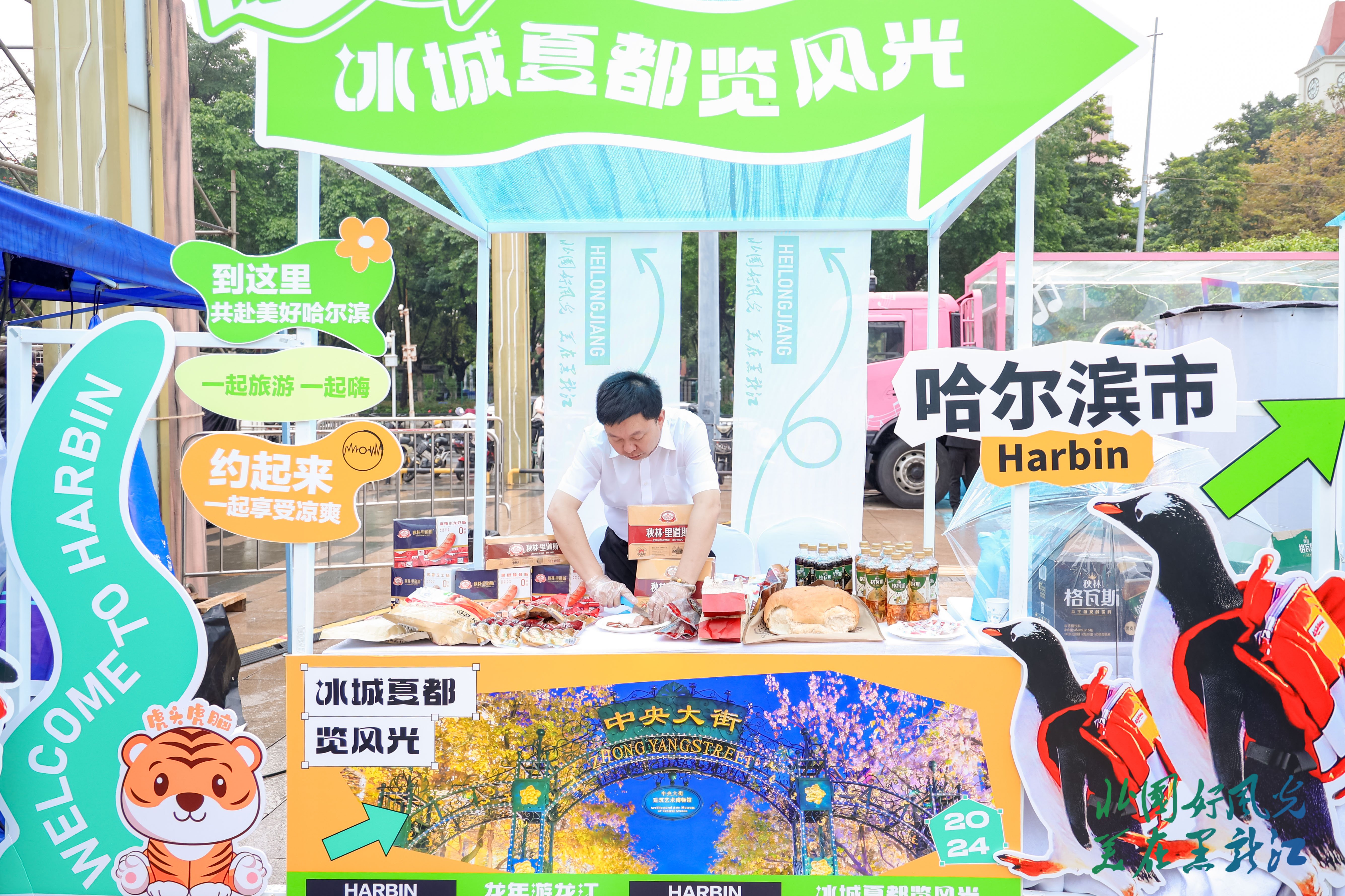 哈爾濱展位用美味的紅腸、格瓦斯等招待廣州市民