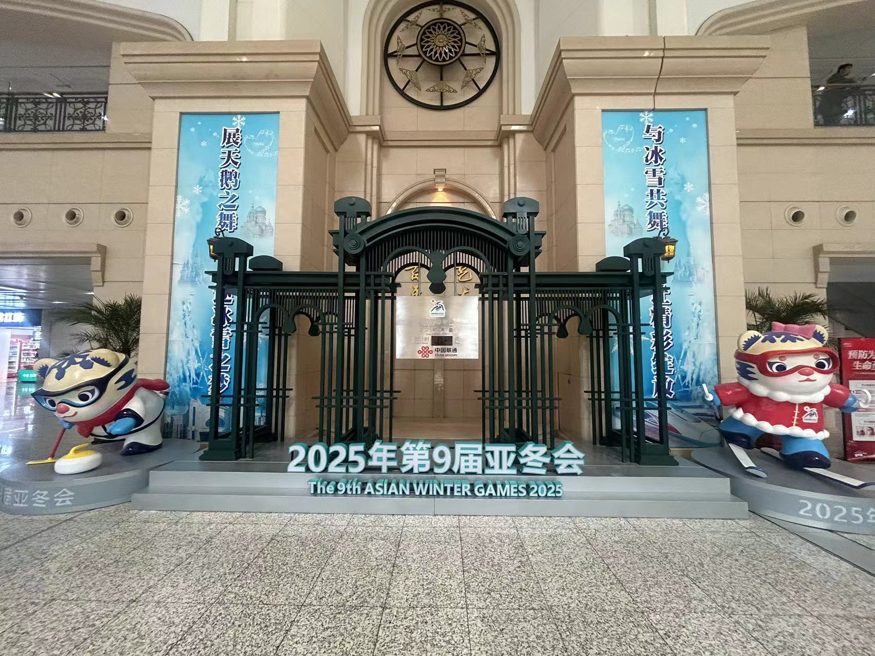 近日,在哈爾濱火車(chē)站候車(chē)大廳的藝術(shù)舞臺(tái)上,一座亞冬會(huì)倒計(jì)時(shí)景觀雕塑吸引眾多旅客在此打卡合影。這處雕塑將哈爾濱火車(chē)站的建筑風(fēng)格和亞冬會(huì)元素完美融合,以經(jīng)典的“哈爾濱綠”鐵藝結(jié)構(gòu),展示了哈爾濱悠久的鐵路文化底蘊(yùn)。