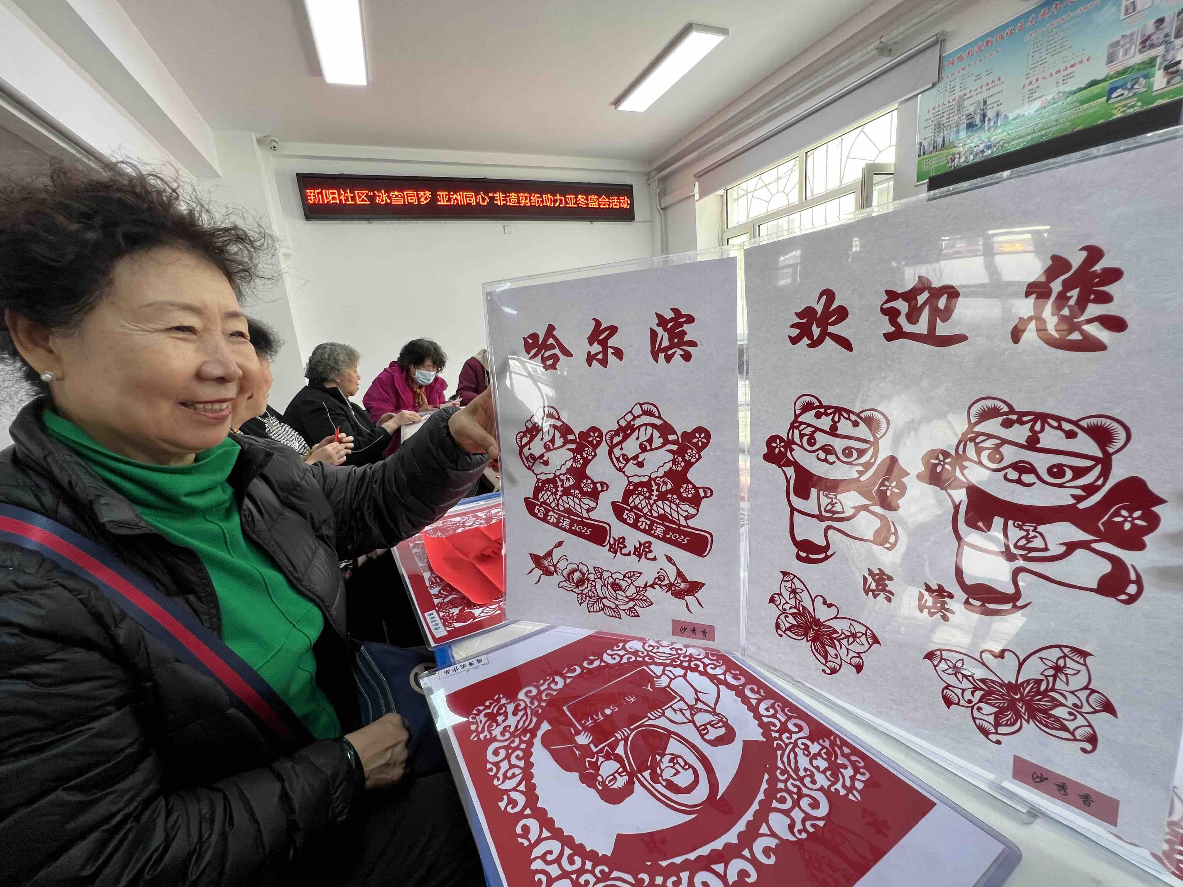 活動(dòng)期間,心靈手巧的社區(qū)居民用剪刀、彩紙剪裁出一個(gè)個(gè)活潑可愛(ài)的亞冬會(huì)吉祥物“濱濱”“妮妮”,在喜慶、祥和、熱烈的氛圍中傳遞著對(duì)亞冬會(huì)的熱盼之情。