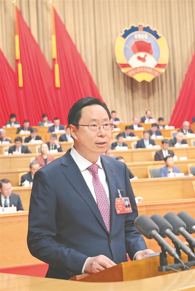 12日,在政協(xié)黑龍江省第十三屆委員會(huì)第三次會(huì)議上,藍(lán)紹敏作常委會(huì)工作報(bào)告。本報(bào)記者 荊天旭攝