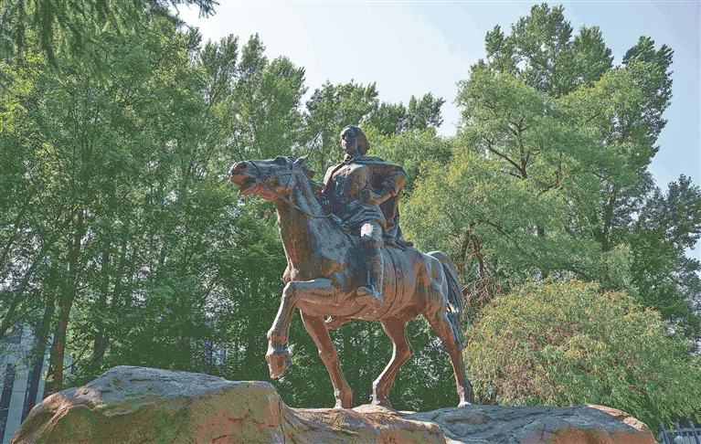 驅(qū)車駛?cè)牒邶埥∩兄臼?,一眼便看見環(huán)島中心屹然挺立的高大銅像:趙尚志將軍身騎戰(zhàn)馬,戎裝飛揚,他望向遠方,好似凝視這一方和平安寧。