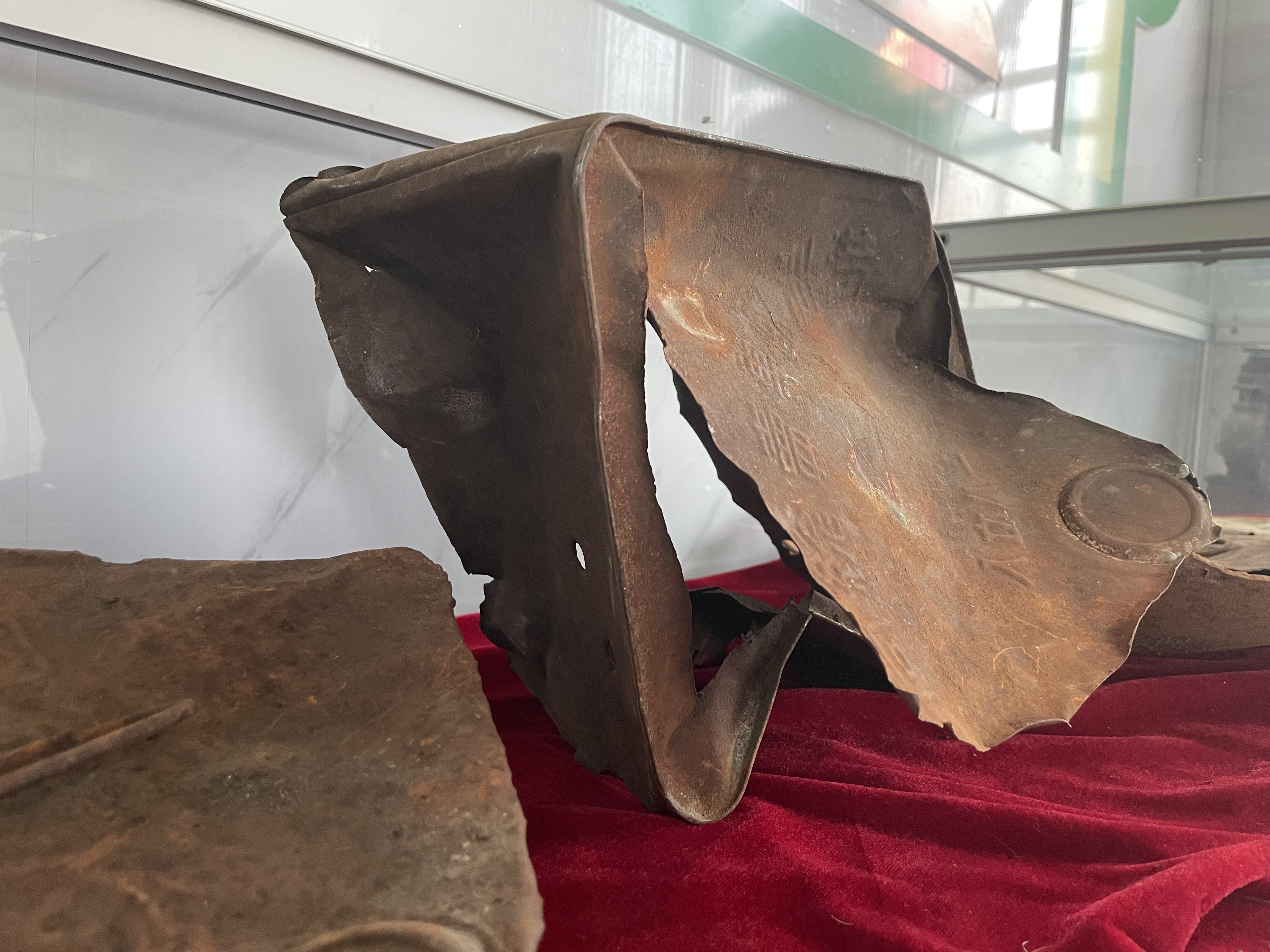 當(dāng)日光西斜,回到公路再轉(zhuǎn)向呼瑪縣興華鄉(xiāng)方向,40分鐘后,在韓家園林業(yè)局興華林場(chǎng)黨員服務(wù)站中,日軍補(bǔ)給桶、舊電話等侵華罪證被一一陳列著?!岸际钱?dāng)初在侵華日軍工事遺址中找的,妥善登記保存,不忘歷史?!表n家園林業(yè)局宣傳部部長(zhǎng)尹志峰介紹,阿木卡其河侵華日軍工事遺址以484高地為中心,1000多畝的遺址區(qū)如扇形鋪展于阿木卡其河?xùn)|岸。山頂木質(zhì)瞭望塔的殘樁、辦公室與宿舍的石砌地基,連同周邊蜿蜒的戰(zhàn)壕、重武器陣地遺跡,構(gòu)成了一座軍事化殖民據(jù)點(diǎn)的完整圖景。從“浴池”殘?jiān)酝诔龅娜毡拒娪盟畨?,到刻有“滿(mǎn)洲國(guó)專(zhuān)賣(mài)總局”字樣的干菜桶,乃至采金用的“金刮子”,每一件遺物都在無(wú)聲控訴:這里曾是日軍享樂(lè)的“后勤堡壘”,卻是血淚浸透的煉獄。