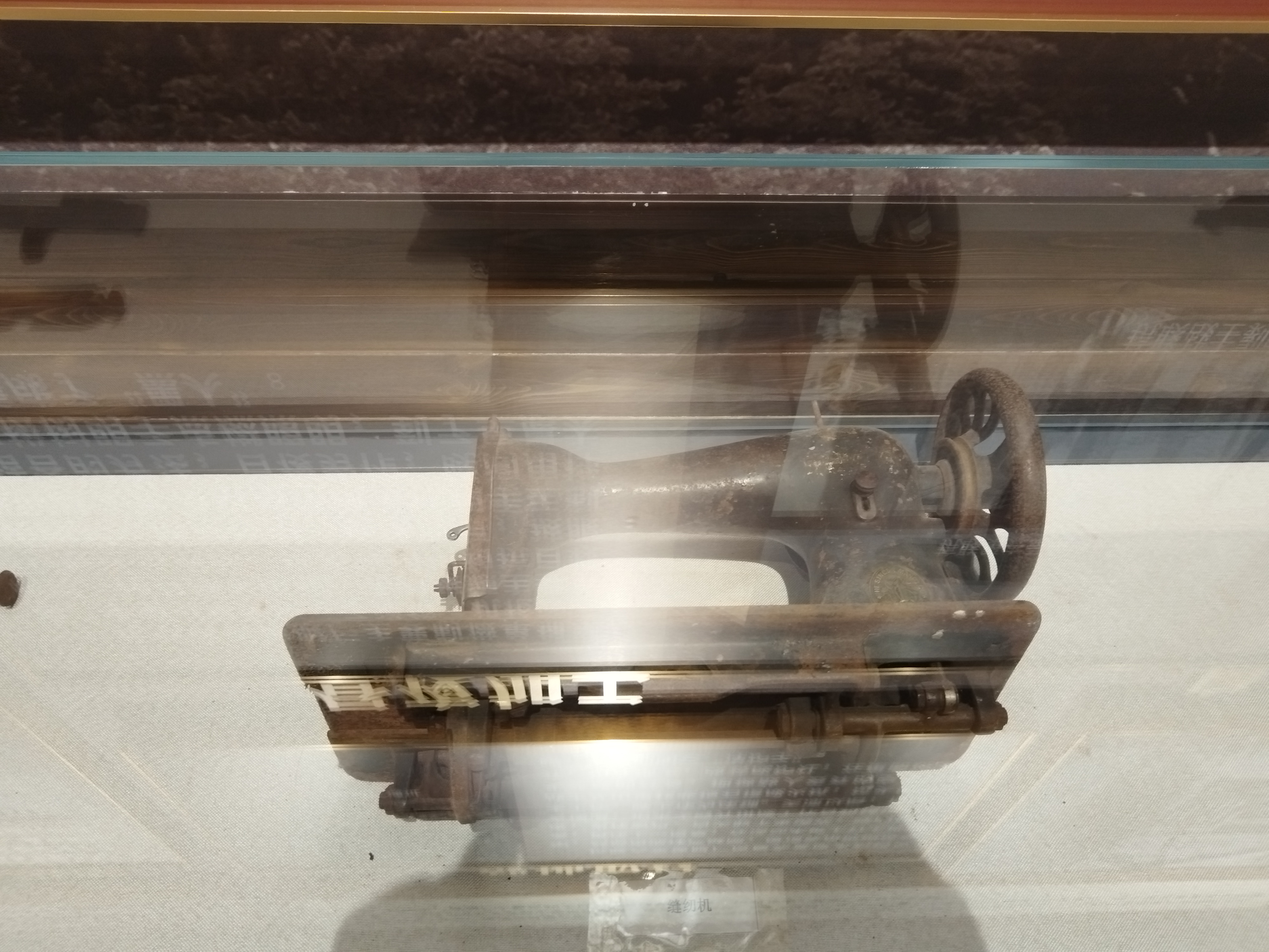 在展廳的醒目位置,一臺銹跡斑斑的老式手搖縫紉機吸引著參觀者的目光?!斑@可是我們的鎮(zhèn)館之寶?!蓖趿战榻B,它是在四塊石山上的密林中被發(fā)現(xiàn)的,發(fā)現(xiàn)時它被人用繩子高高吊在一棵大樹上。