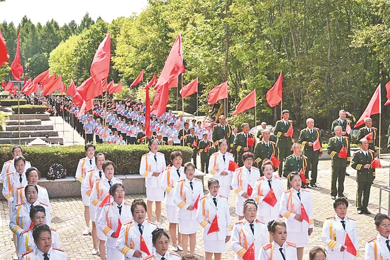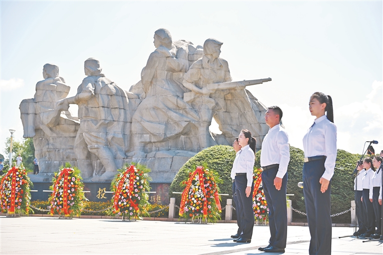 9時(shí),牡丹江市黨政機(jī)關(guān)干部、駐牡部隊(duì)官兵、抗戰(zhàn)老兵、烈士親屬、英模代表、退役軍人、中小學(xué)生、四城區(qū)干部群眾代表等在“八女投江”烈士群雕廣場(chǎng)集結(jié),參加紀(jì)念活動(dòng)。