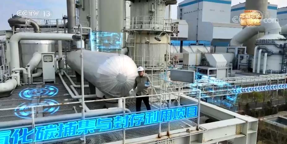 記者:你能想象嗎,我手中拿的這塊磚就是用二氧化碳制作而成的。如何做到的?它是由我腳下的這套國內(nèi)規(guī)模最大燃燒后二氧化碳捕集與封存利用項(xiàng)目,通過這套裝置,它就可以實(shí)現(xiàn)將我身后這些大煙囪中的二氧化碳緊緊抓住,隨后,將其固化制作而成。這套裝置,年捕集二氧化碳15萬噸,如果按照一棵樹年消化18.3公斤碳來計(jì)算,這套裝置,相當(dāng)于每年植樹820萬棵。