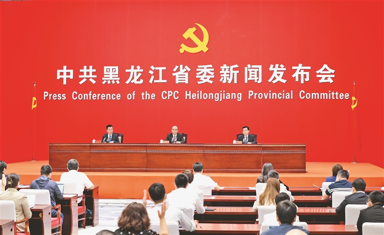 “中國(guó)這十年·黑龍江”主題新聞發(fā)布會(huì)現(xiàn)場(chǎng)。 本報(bào)記者 邵國(guó)良 郭俊峰 攝
