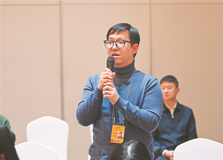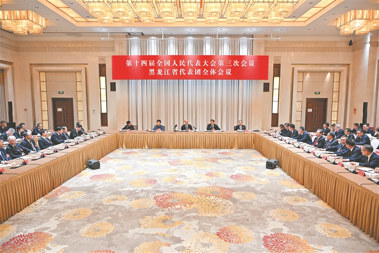 7日上午,出席十四屆全國(guó)人大三次會(huì)議的黑龍江省代表團(tuán)舉行開(kāi)放團(tuán)組活動(dòng),部分代表接受記者集體采訪。本報(bào)記者 郭俊峰攝