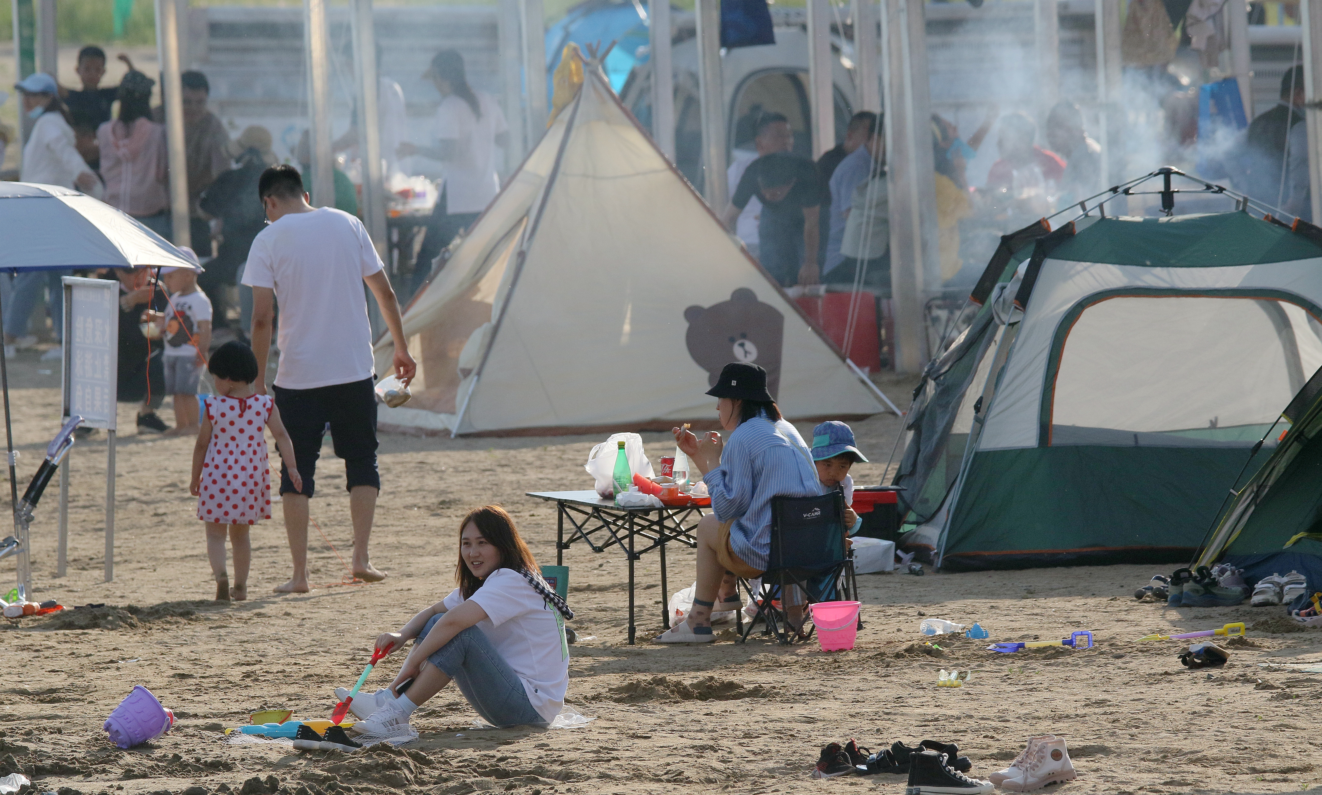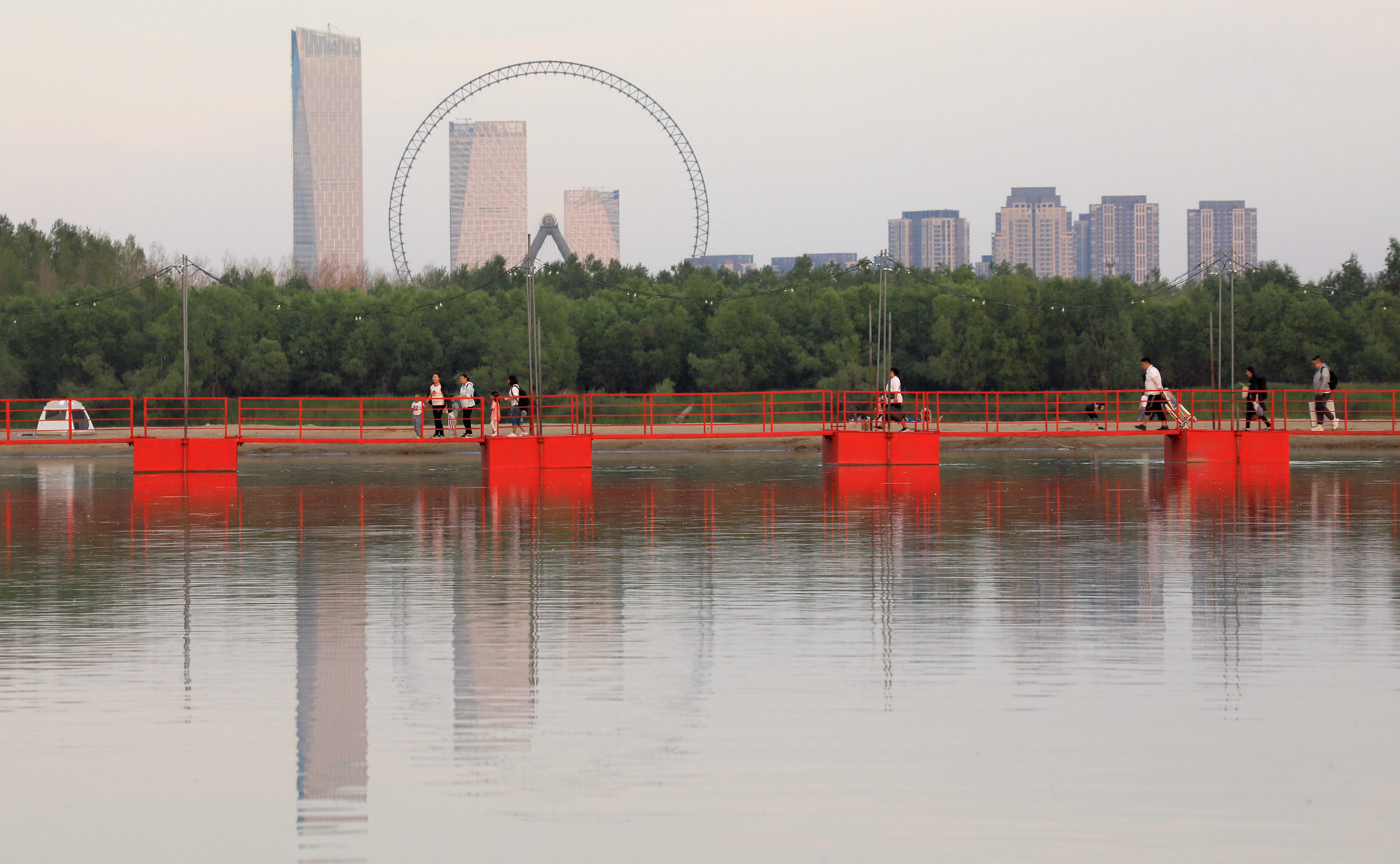 6月仲夏,哈爾濱市民紛紛到松花江畔的各個濕地間休閑避暑。