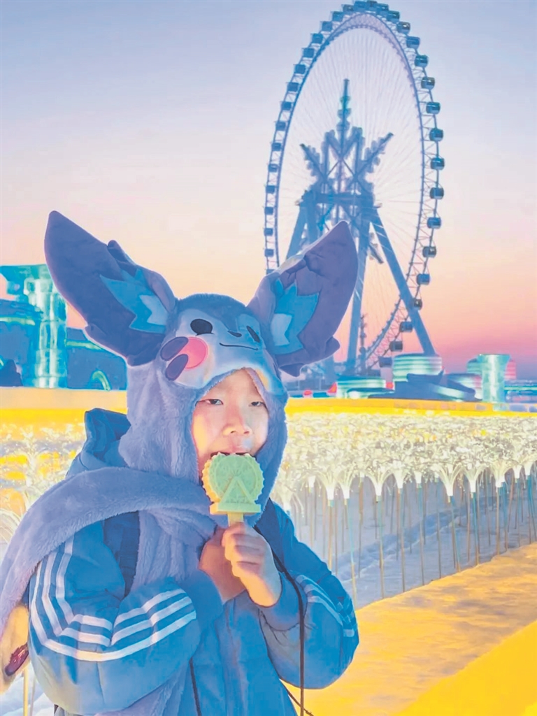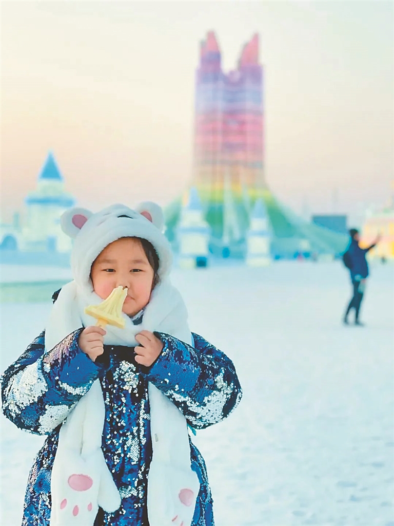 來到哈爾濱冰雪大世界園區(qū)可以看到,看冰雪、吃雪糕、拍照曬圖,已經(jīng)成為許多游客的共同選擇。本報(bào)記者 蔡韜攝