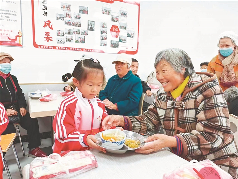 牡丹江市愛民區(qū)民政局指導(dǎo)興平街道社工站為轄區(qū)特殊困難老人開展“孝潤童心,愛滿夕陽”重陽節(jié)活動。孩子們飽含著對老人的敬愛,聲音洪亮地朗讀《中國孝道》和《重陽到》,配樂詩朗誦《獻(xiàn)給敬愛的爺爺奶奶》使得老人們眼眶濕潤。隨著午餐的臨近,孩子們主動幫爺爺奶奶端飯?!盎丶?,我也要給我爺爺奶奶端飯,孝順?biāo)麄??!焙⒆觽冋f。