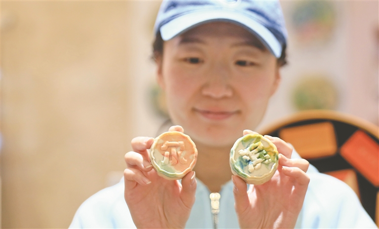 在哈爾濱市索菲亞景區(qū)旁邊的一家蛋糕店內(nèi),以索菲亞教堂、哈爾濱站、雪花摩天輪等哈爾濱地標(biāo)建筑為造型,由“雪花”以及“千里江山圖”“金魚(yú)滿堂”等傳統(tǒng)吉祥圖案制作而成的文創(chuàng)月餅受到游客和市民的青睞。