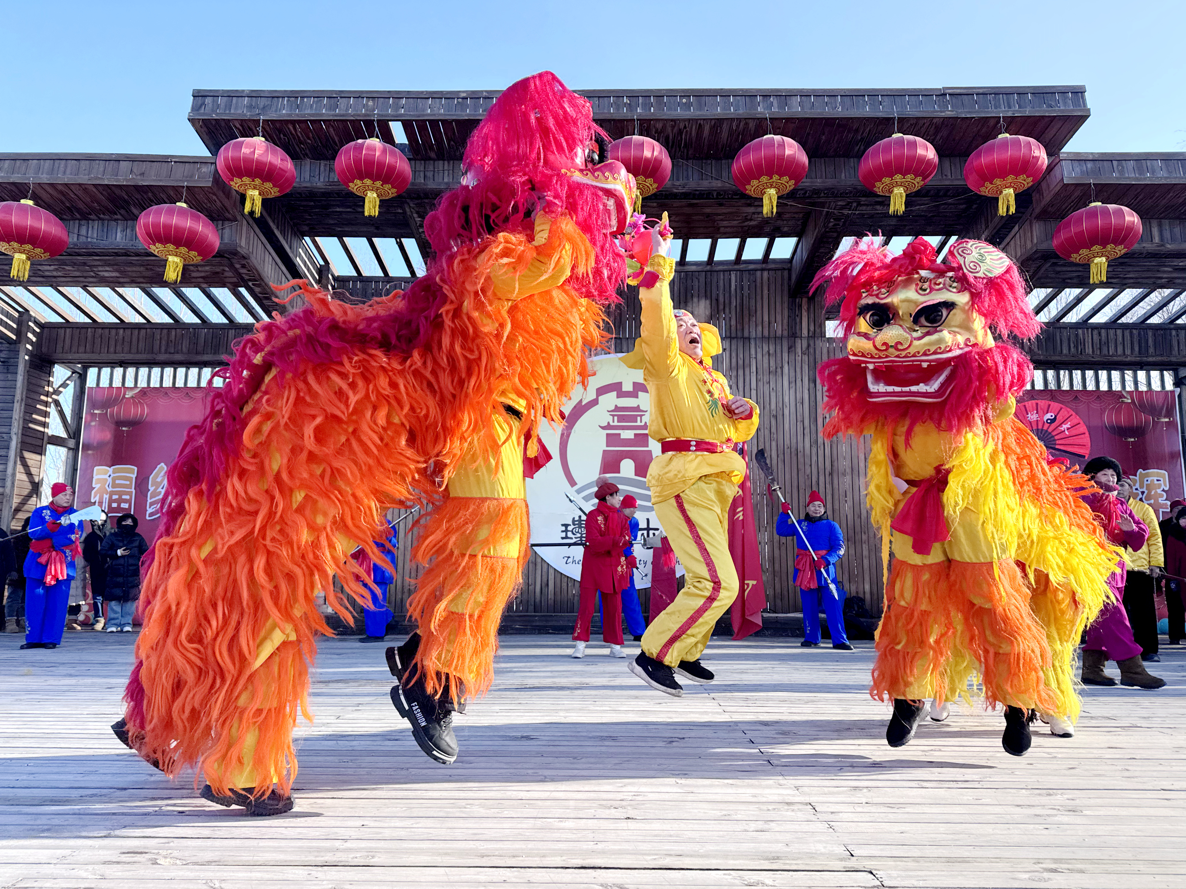 民俗盛宴,精彩紛呈。步入“演武廳”,一道白雪古墻將場(chǎng)地分隔開來。立燈官、布陣容、迎五谷瓶、舞龍舞獅等傳統(tǒng)民俗活動(dòng)依次上演,祈愿新一年風(fēng)調(diào)雨順、國(guó)泰民安?!斑@些傳統(tǒng)民俗儀式很震撼,再一次設(shè)身處地地感受到了璦琿古城濃厚的文化氛圍。”游客陳婧依每年都會(huì)來到這里探尋古韻,感受歷史。