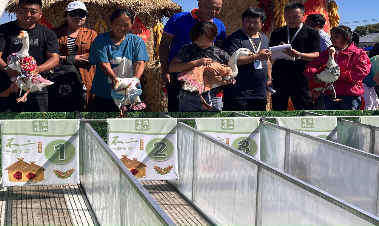 孟家崗鎮(zhèn)“豐收節(jié)”農(nóng)民趣味運動會上,農(nóng)民在進行大鵝比賽(圖片由佳木斯市委宣傳部提供)