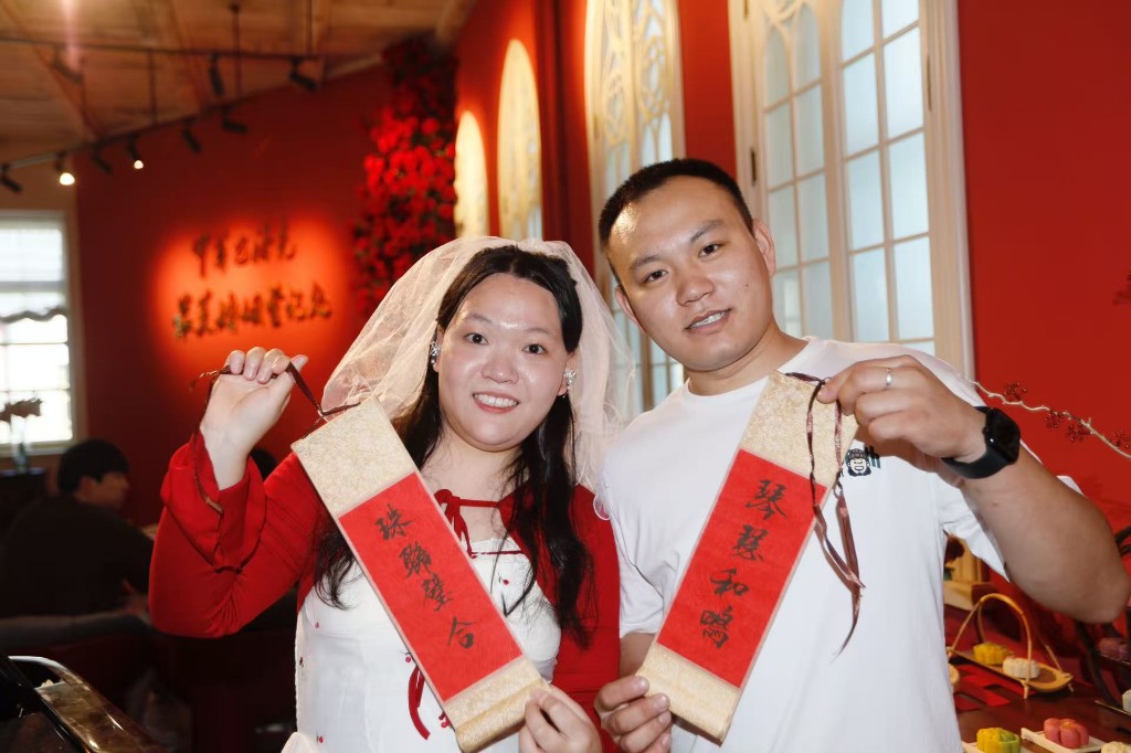 活動(dòng)現(xiàn)場(chǎng),首對(duì)在此辦理登記的新人劉先生與李女士表示:“在這里領(lǐng)證,比在普通登記處更有儀式感,仿佛穿越時(shí)空,感受到了別樣的浪漫?!?/p>