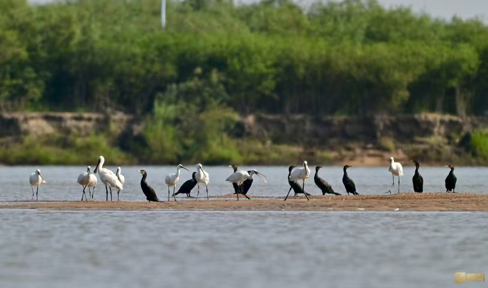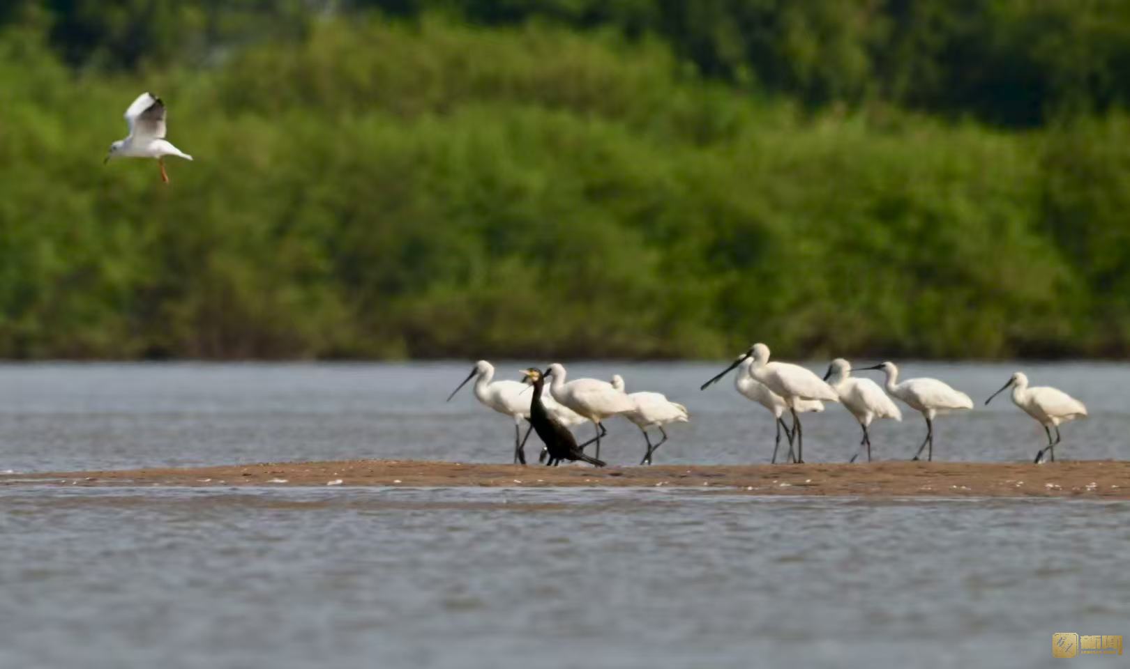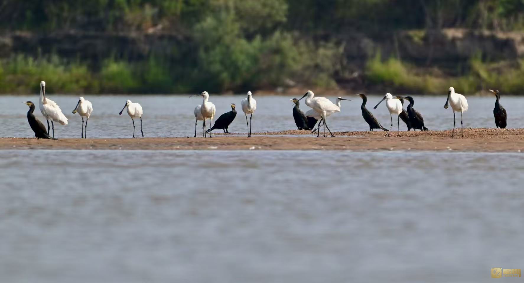 此次在松花江上遇見的白琵鷺有10只左右,在它們周圍,有一些鸕鶿在沙灘邊緣散步。捕捉到白琵鷺與紅嘴鷗、蒼鷺和睦相處的畫面,令人欣喜。