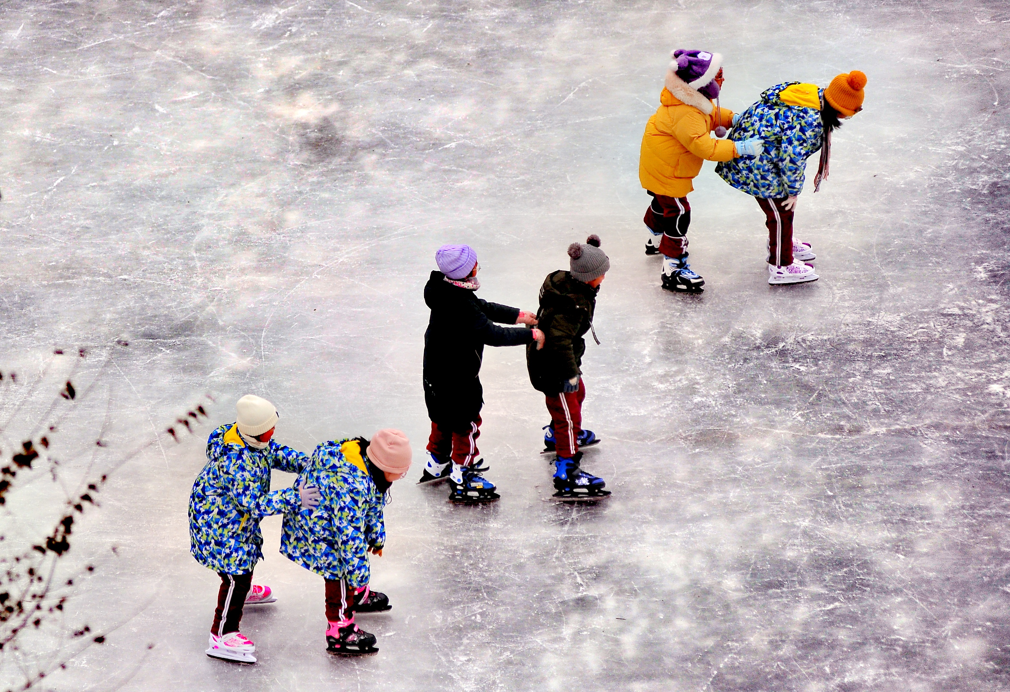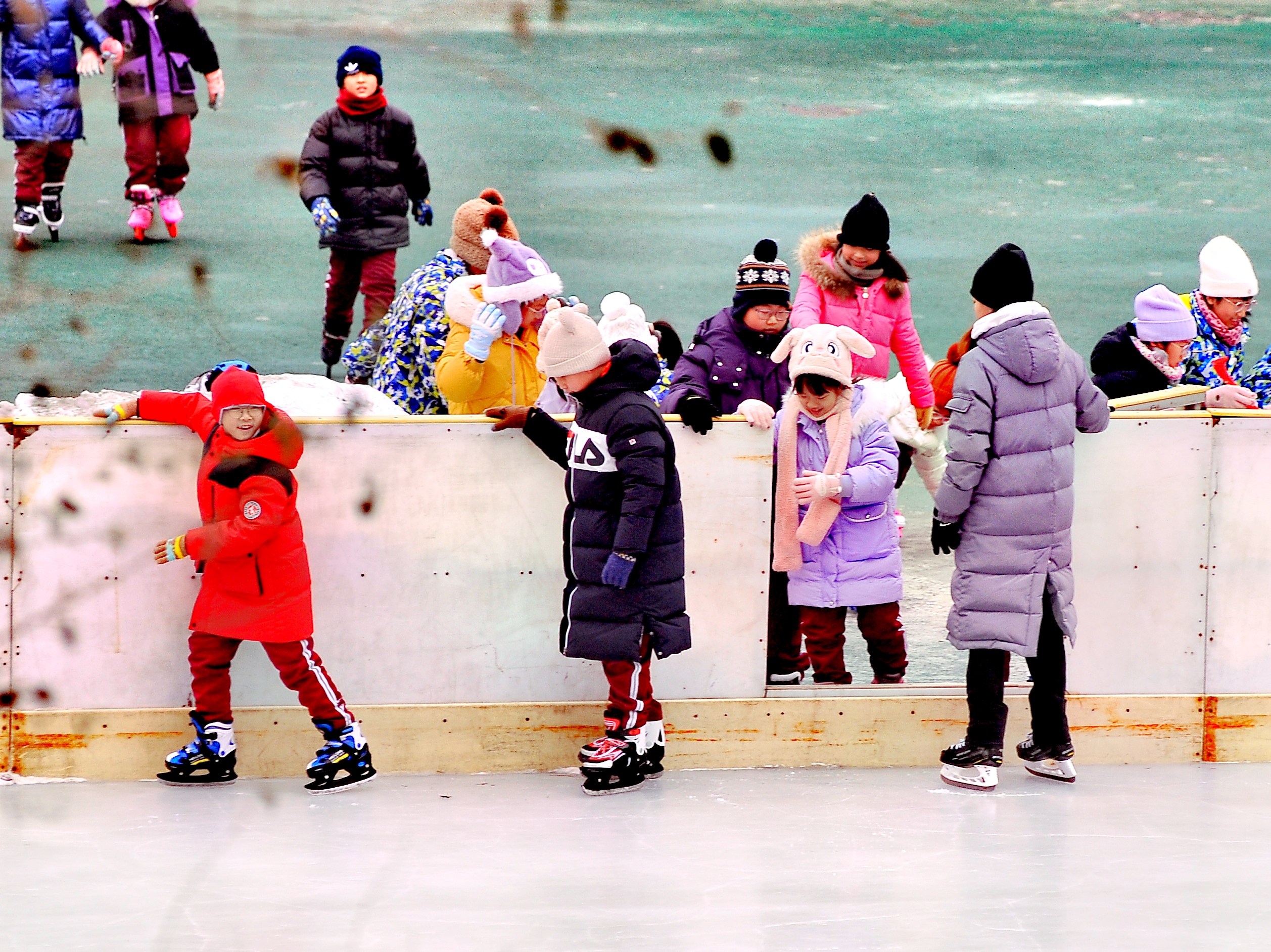 這些學(xué)生中有的是新手,需把著護欄前行,生怕摔倒;有的已是冰場“老將”,在冰面上隨意加速、剎車。