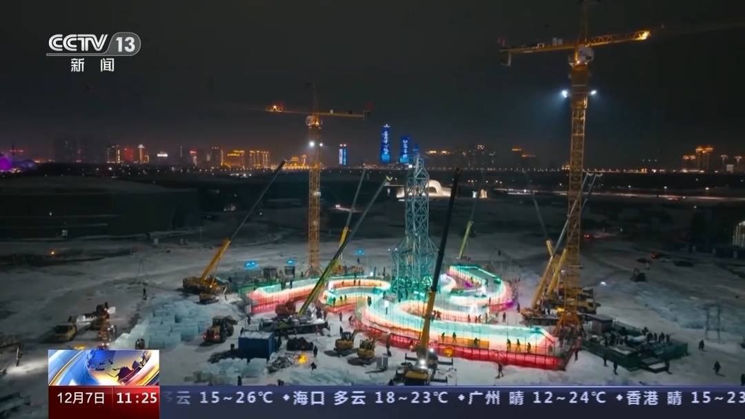 目前,哈爾濱冰雪大世界正在如火如荼的建設(shè)中,預(yù)計(jì)本月中旬將開門迎客。(來源:央視新聞)