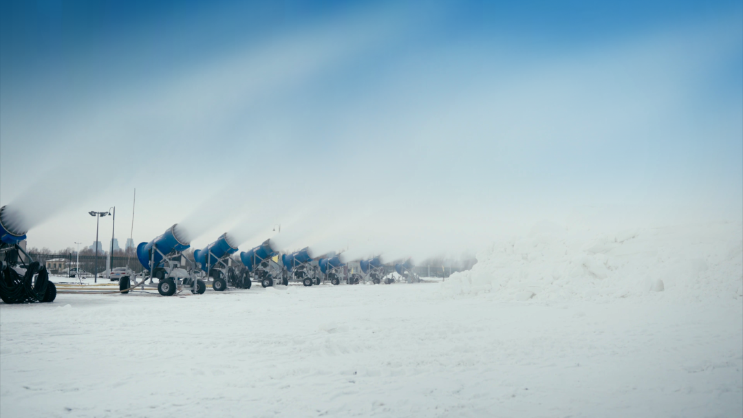 造雪人員需要實時監(jiān)控天氣情況,隨時調(diào)整造雪設(shè)備參數(shù),保證制造出的雪黏性大、水分高,雪質(zhì)純凈,保障建設(shè)用雪的質(zhì)量和雪雕作品的完美呈現(xiàn)。