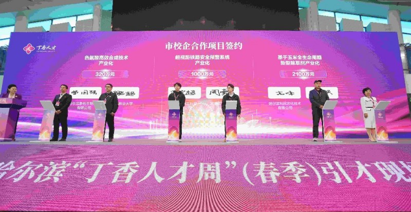 哈爾濱市委人才辦以此次“丁香人才周”為契機,共促成科技成果轉(zhuǎn)化,校地、校企、企業(yè)間合作項目106個,簽約總額達到9500余萬元,進一步深化拓展校企、校地合作,優(yōu)化市校雙向賦能、共建共促共享機制,實現(xiàn)“創(chuàng)新鏈、產(chǎn)業(yè)鏈、資金鏈、人才鏈”深度融合、相互賦能。