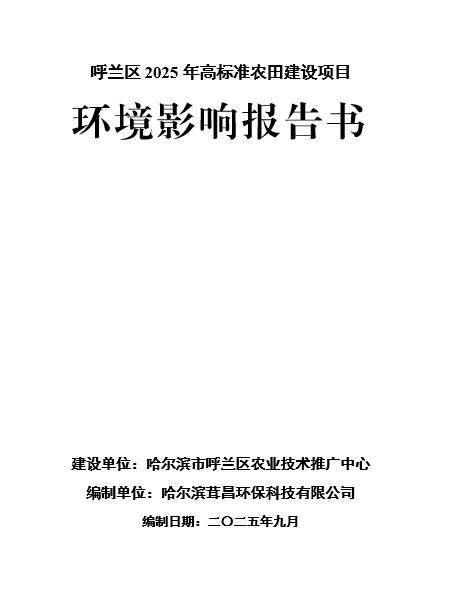 呼蘭區(qū)2025年高標準農(nóng)田建設項目環(huán)境影響報告書及公眾參與說明