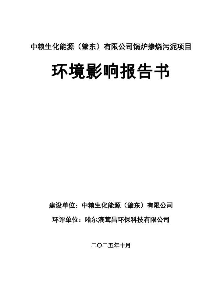 中糧生化能源(肇東)有限公司鍋爐摻燒污泥項目環(huán)境影響報告書及公參說明